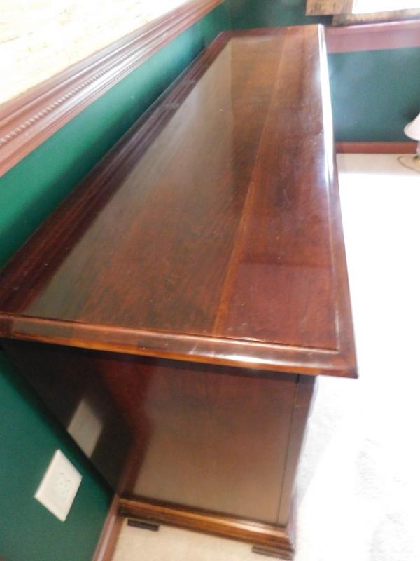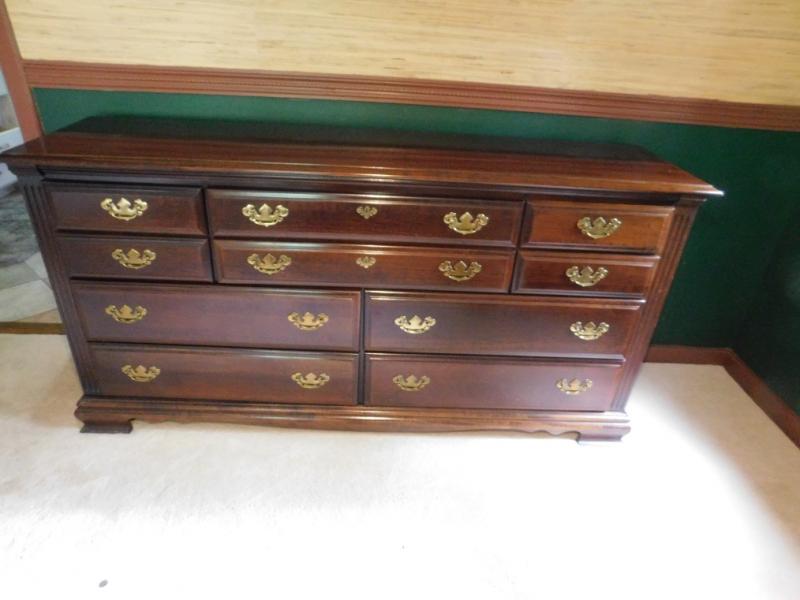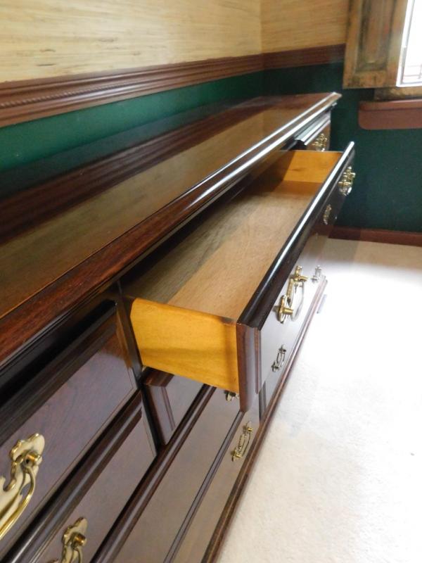 Mahogany Finish 10 Drawer Dresser has some wear to the finish on top surface.