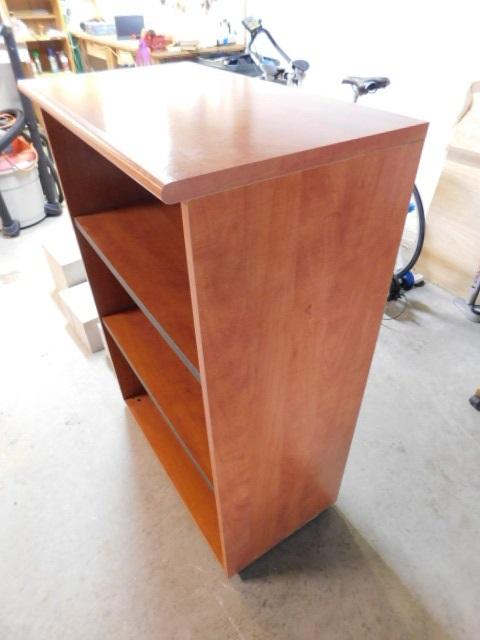 Cherry Finish Pressed Wood Book Stand 31"x18"x46" solid and in good condition. Garage level