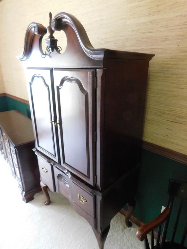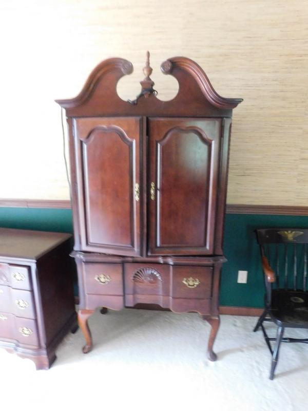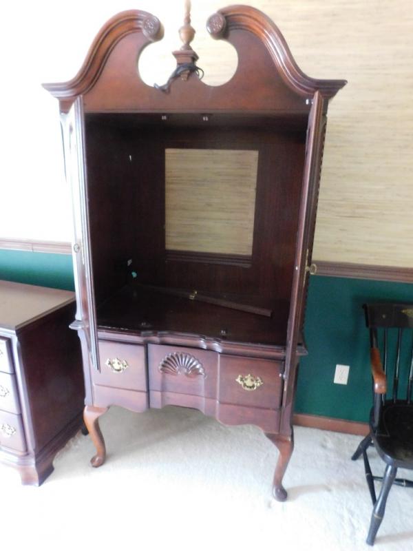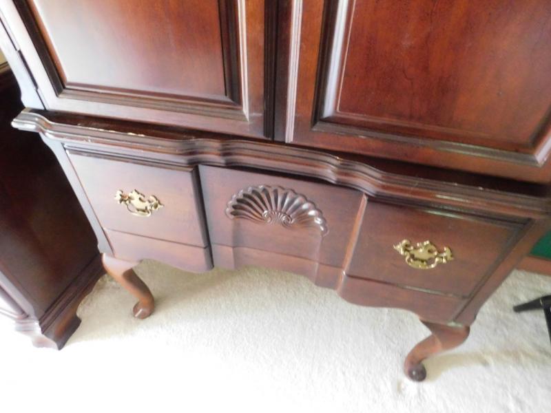 Mahogany Finish Queen Anne Style Entertainment Center has some scratches but very solid