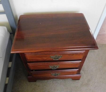 Cherry Finish Three Drawer Bedside Dresser 24"x17"x23"