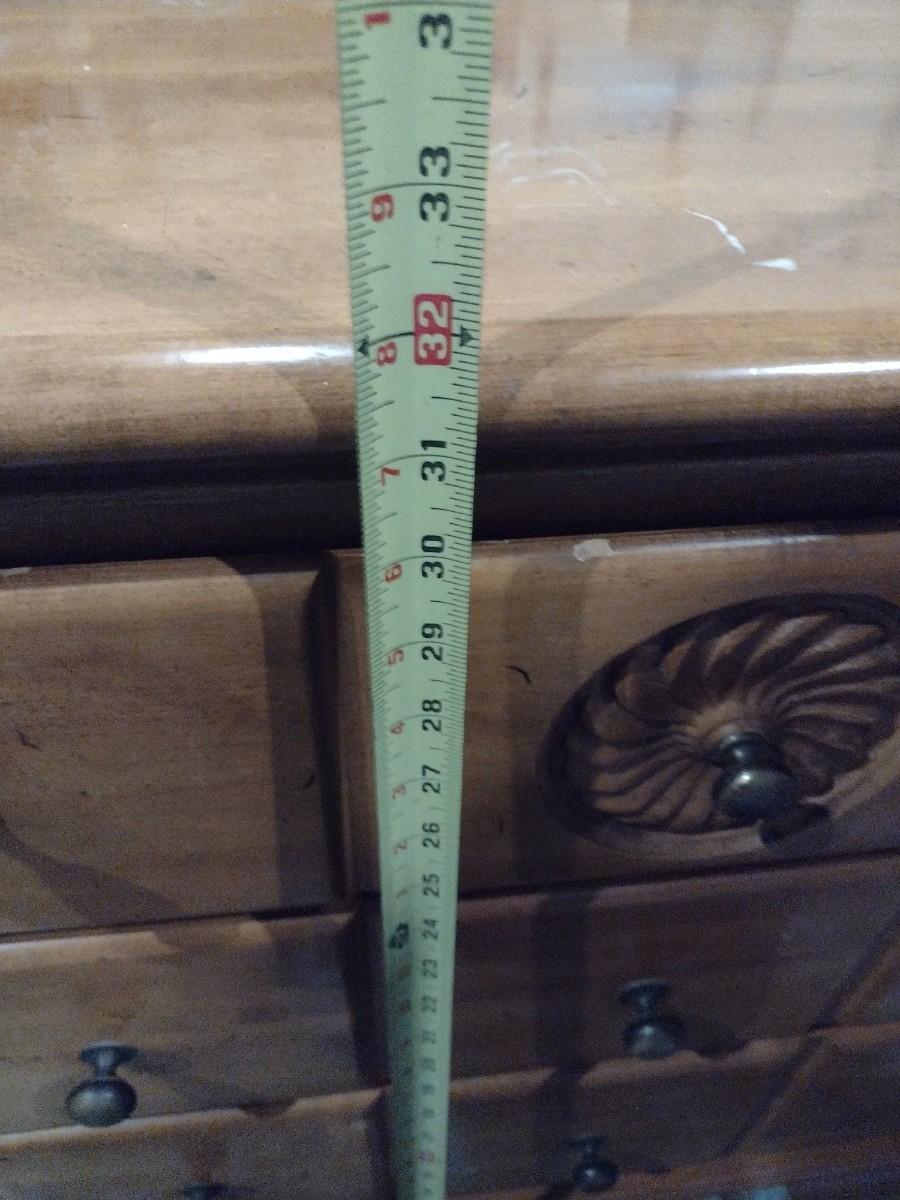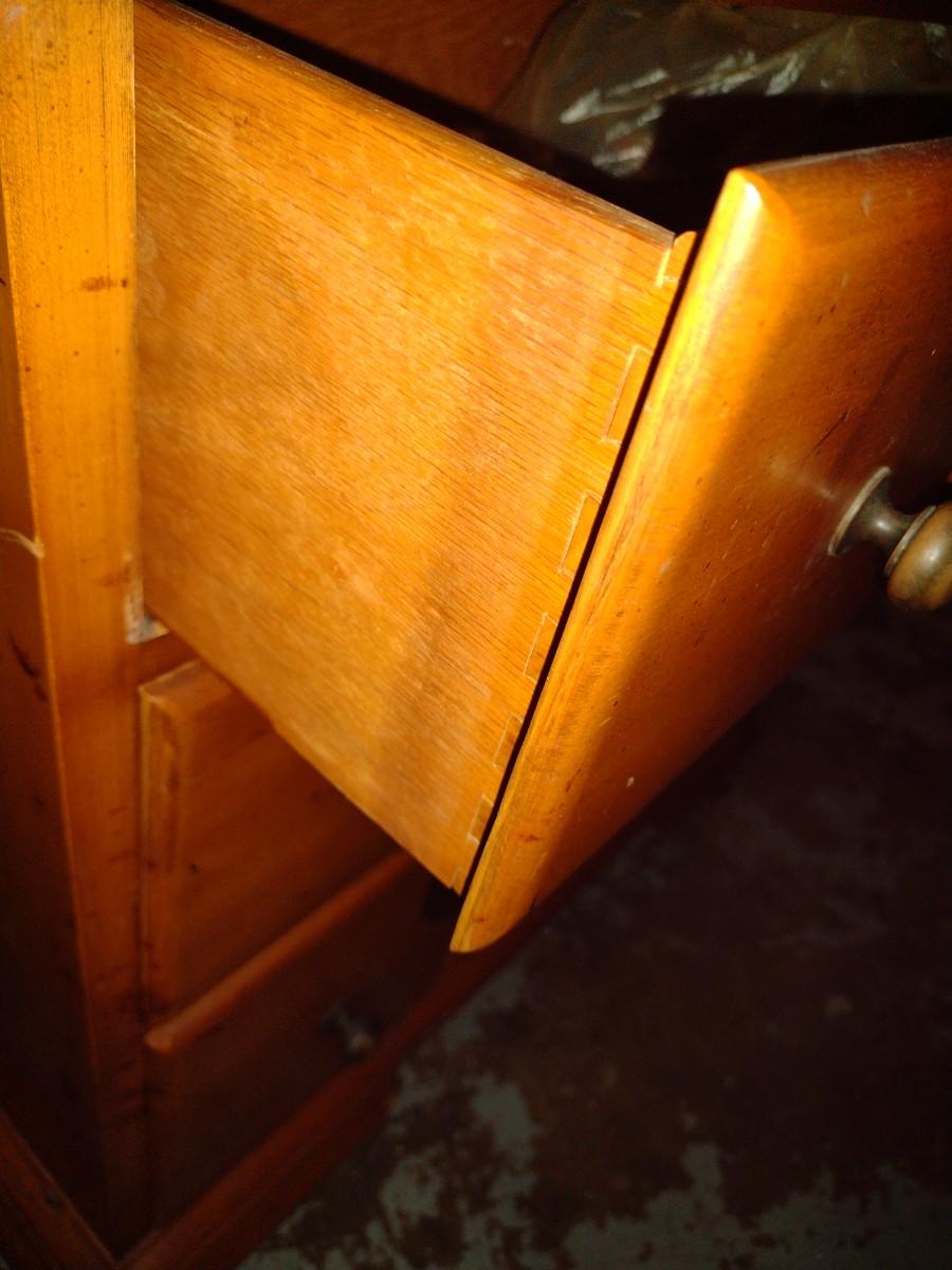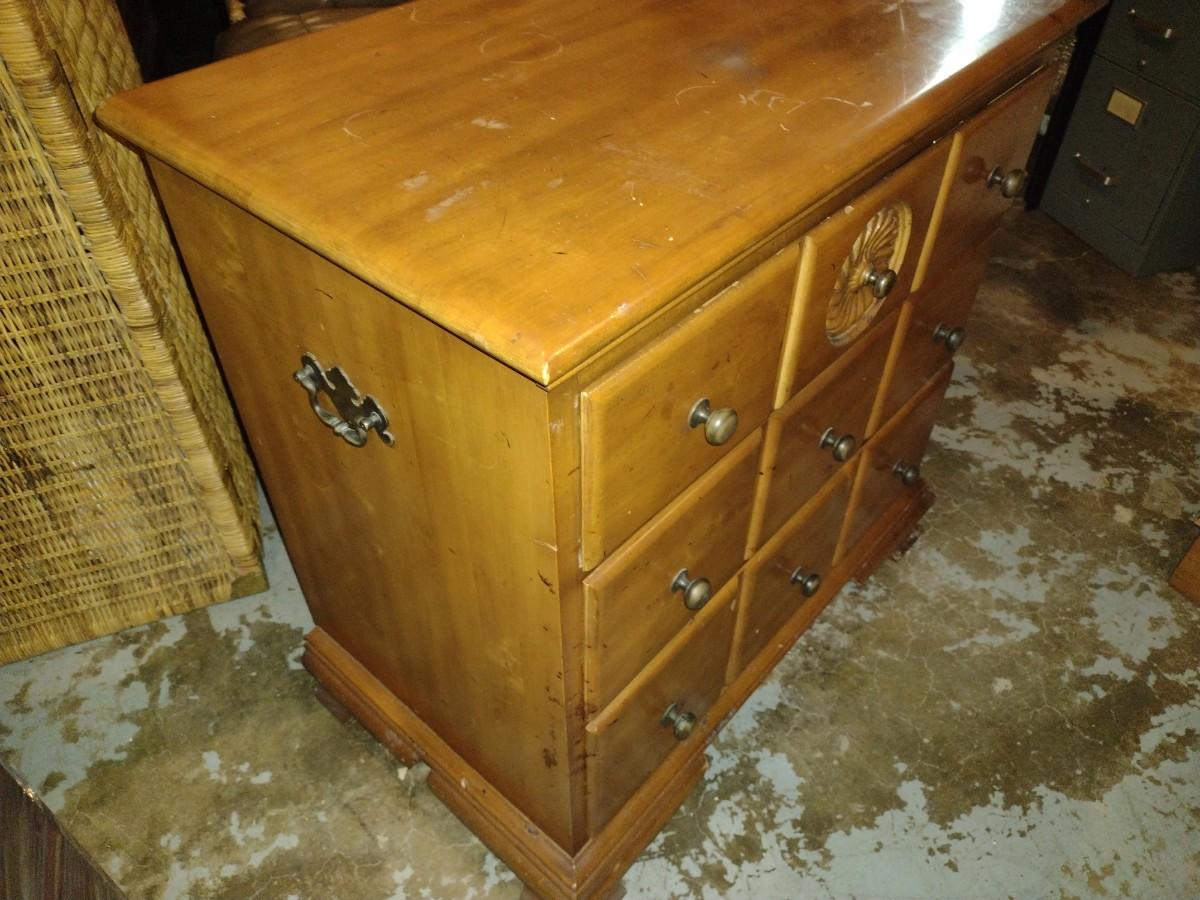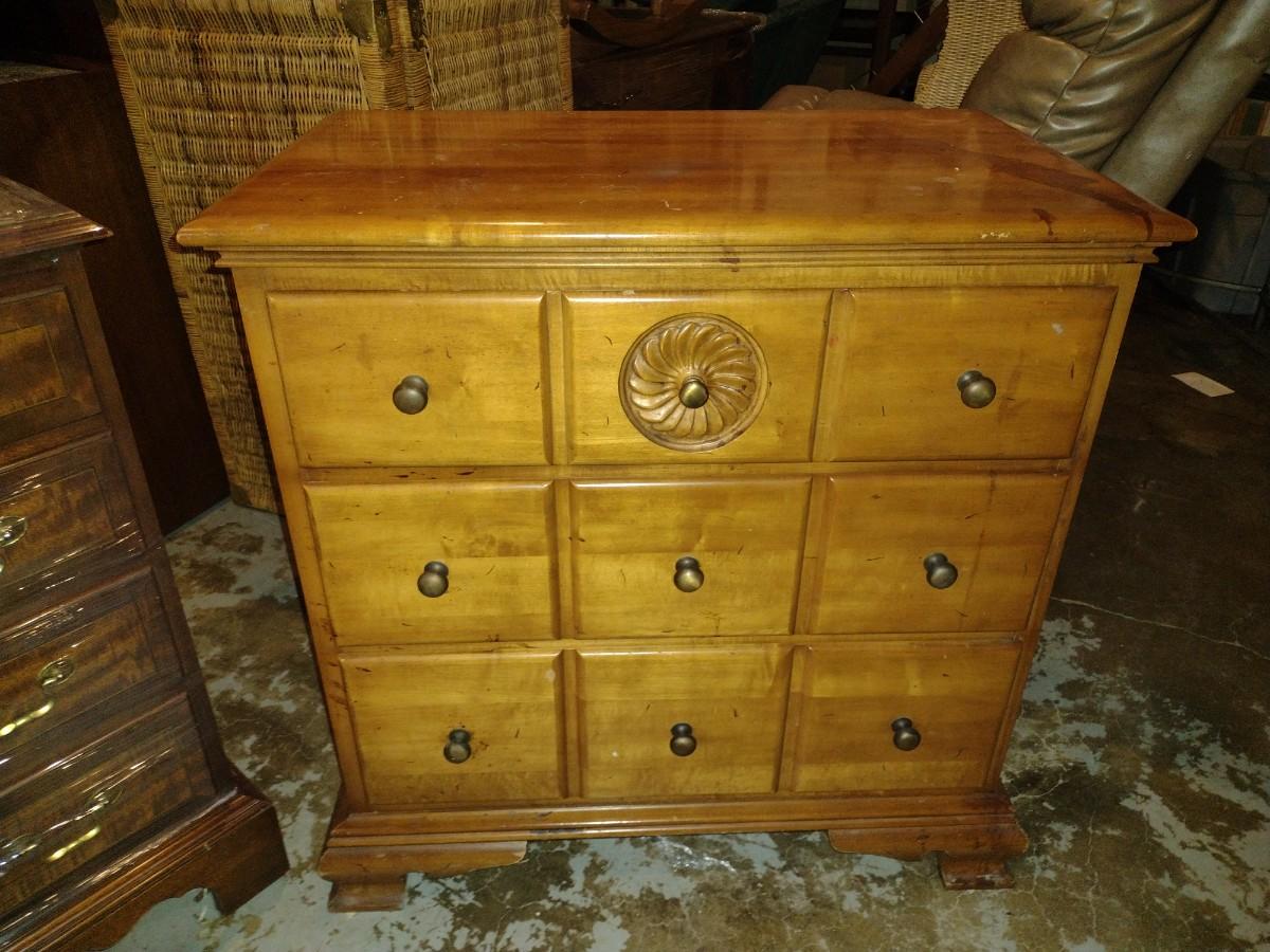 Cherry Wood Three Drawer Dresser. Has some staining on surface as shown.