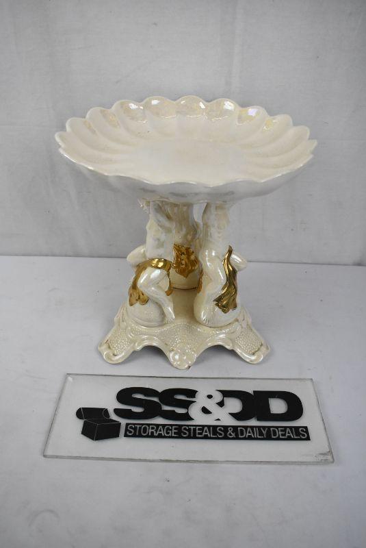 Cherub Bird Bath, Cream/Gold colors with iridescent finish - Vintage