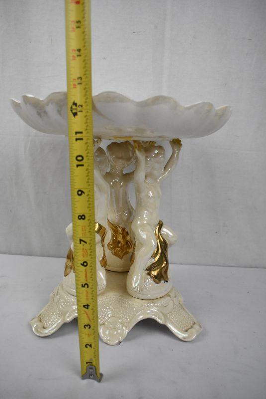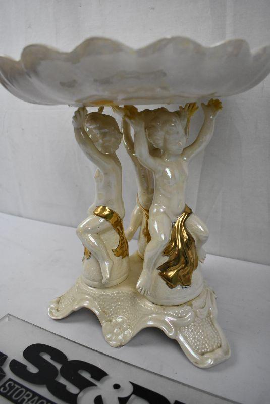 Cherub Bird Bath (bowl piece is NOT attached to cherub piece) Cream/Gold colors with iridescent finish - Vintage