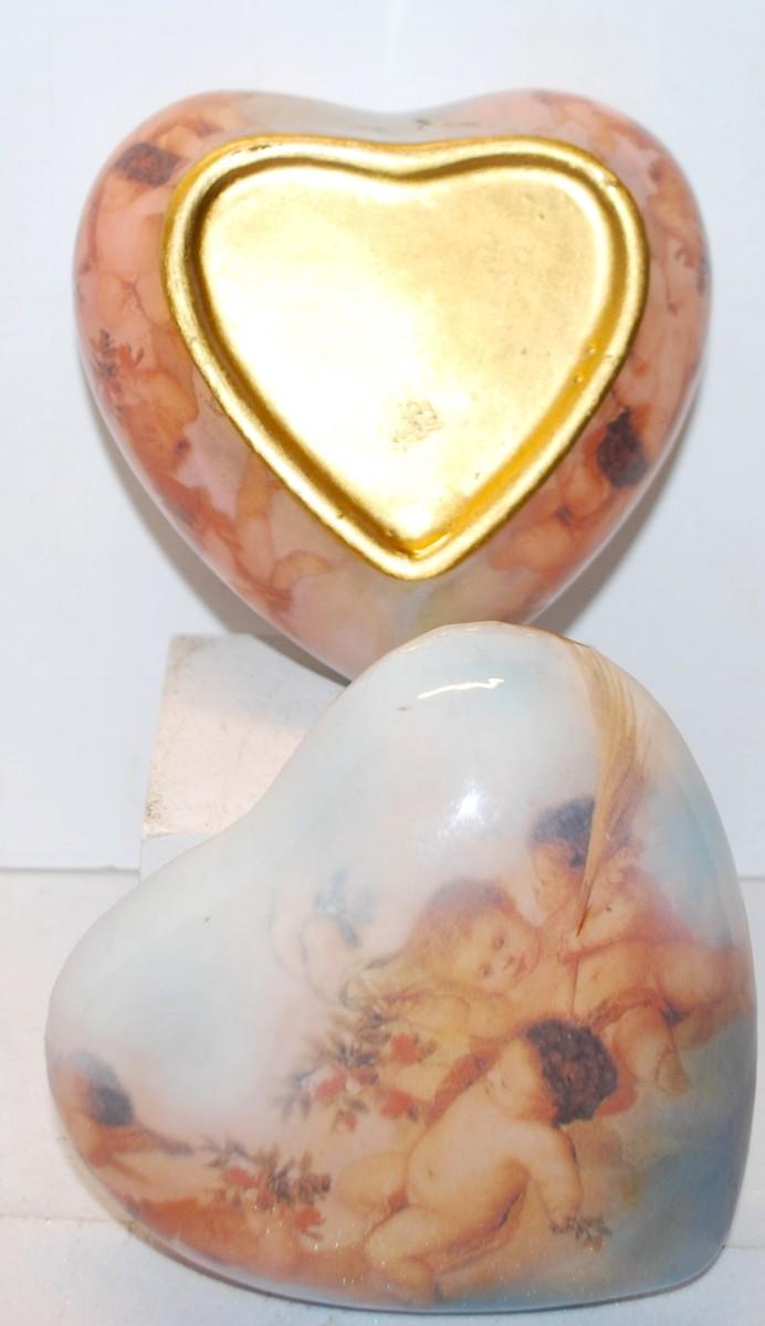 Cherub-Styled Figurines on a HEART Shaped Covered Jewelry Box with a Lined Pillow Interior 5" x 4 "