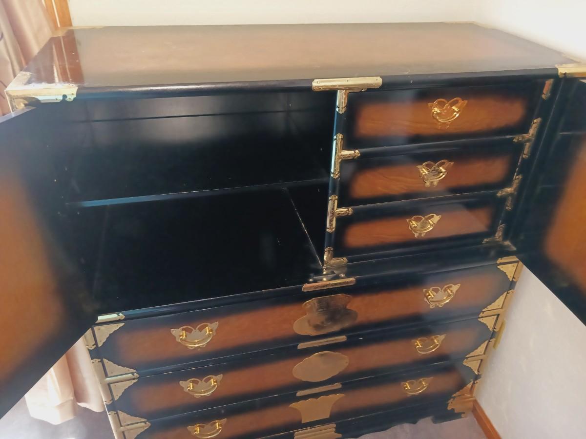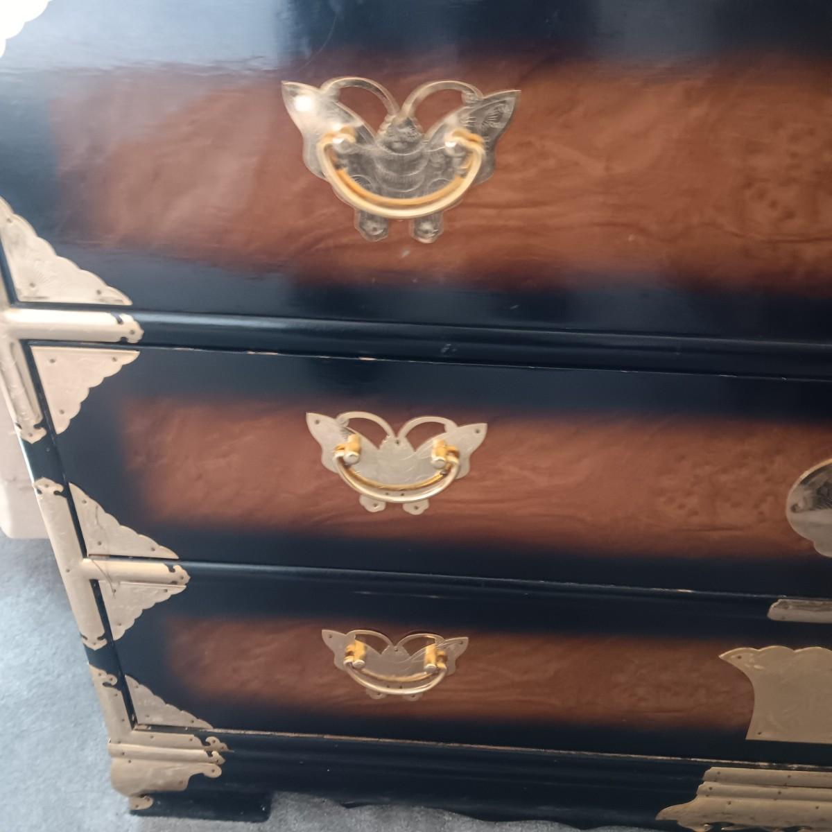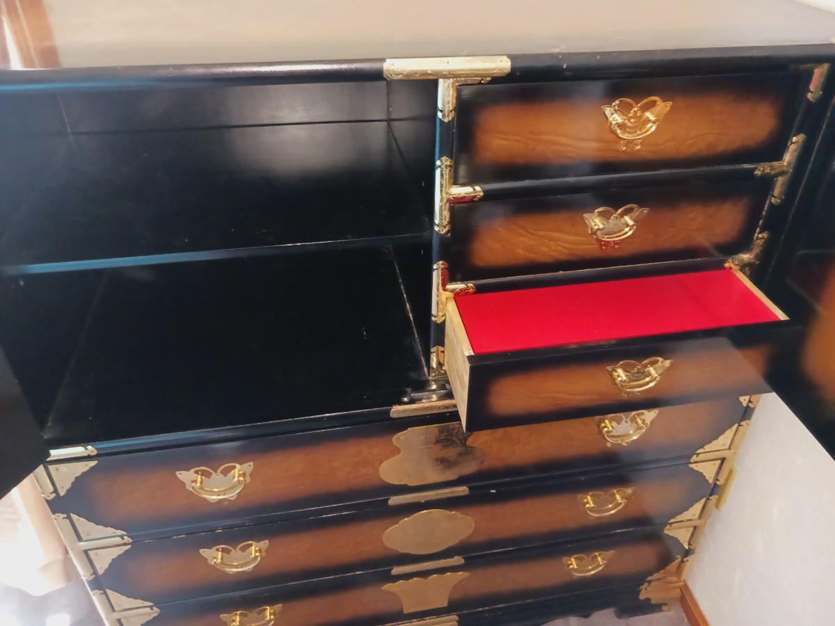 GORGEOUS KOREAN TANSU-STYLE CHINOISERIE CHEST OF DRAWERS W/BUTTERFLY HARDWARE