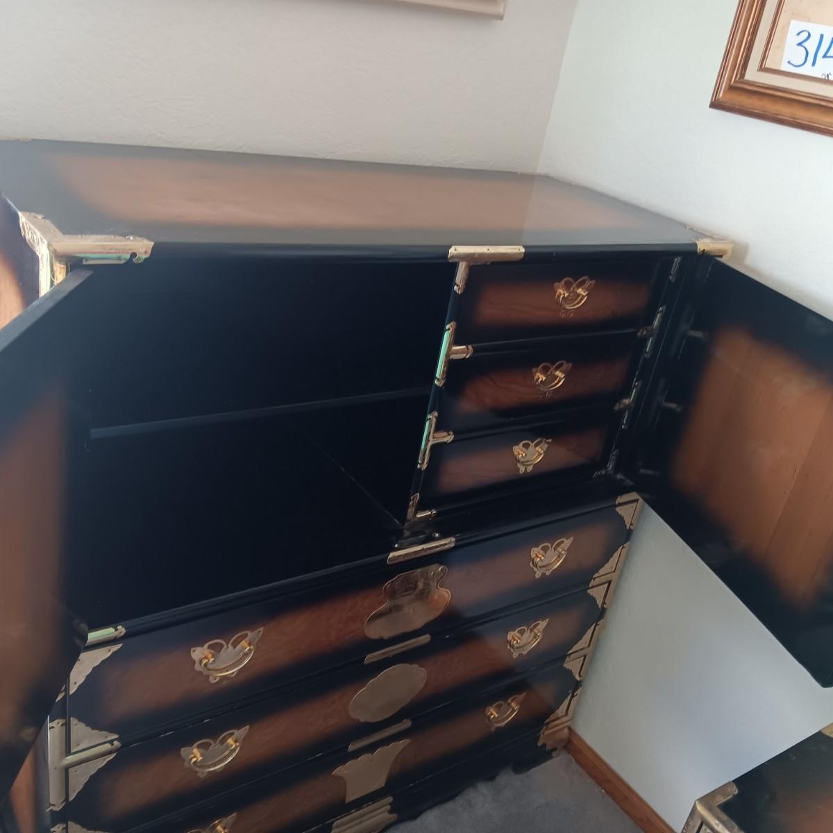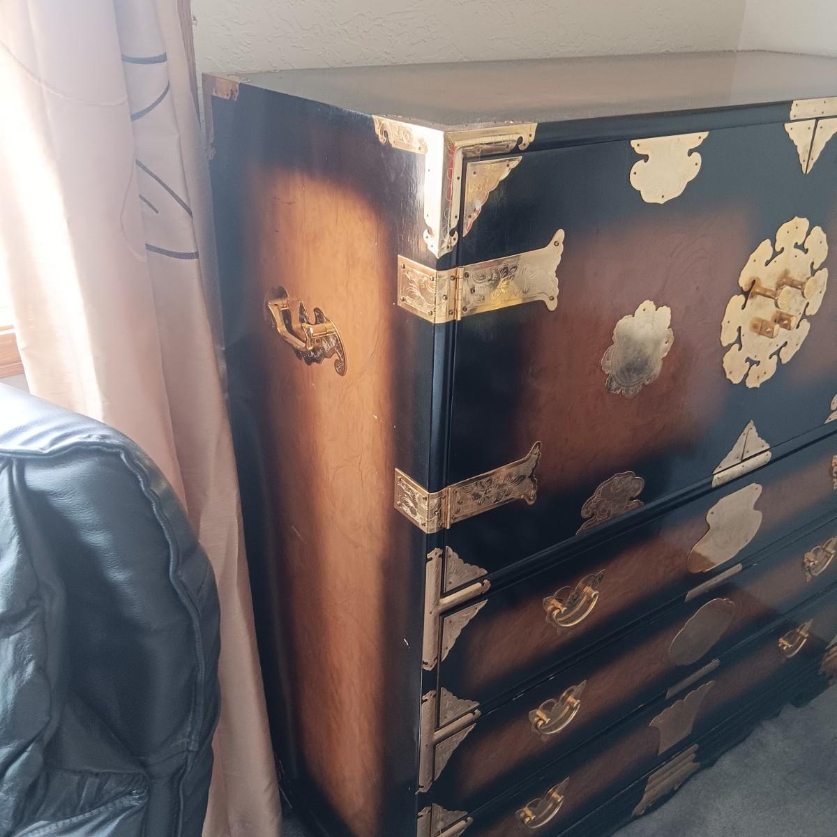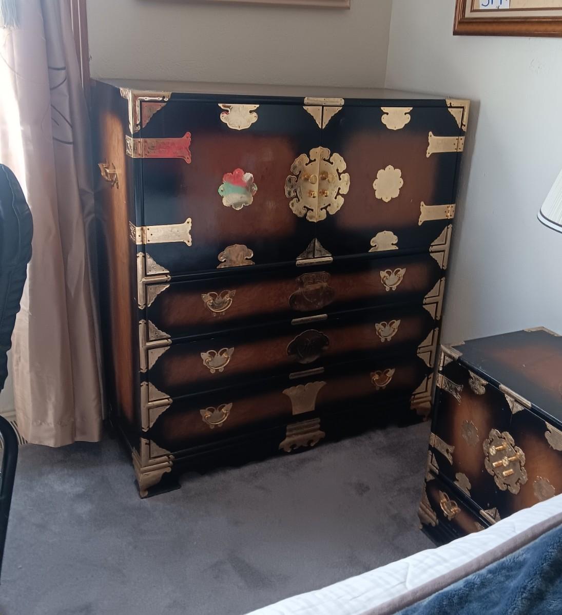 GORGEOUS KOREAN TANSU-STYLE CHINOISERIE CHEST OF DRAWERS W/BUTTERFLY HARDWARE