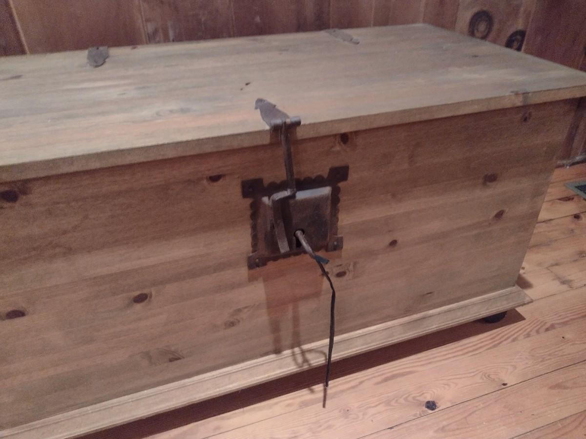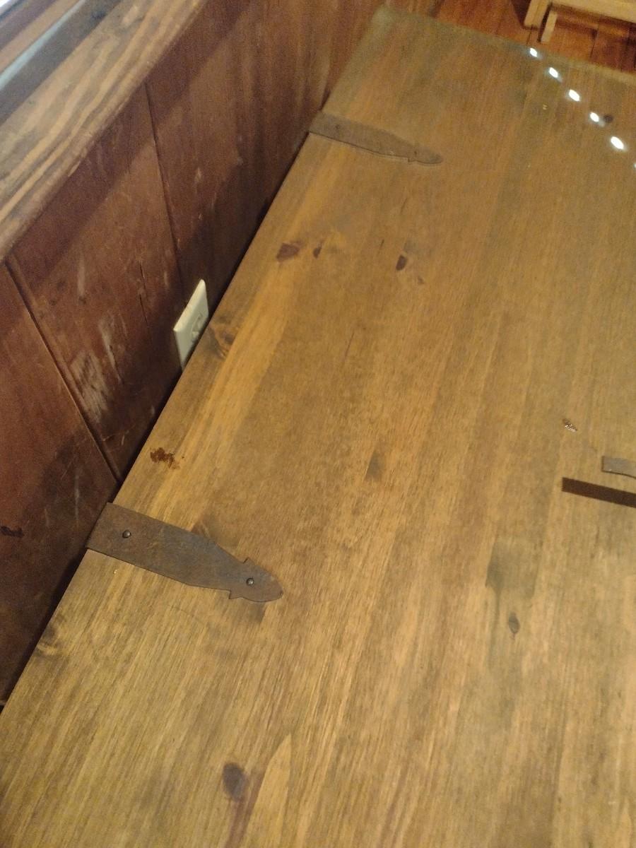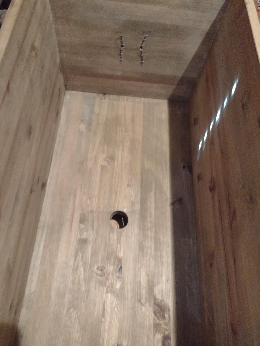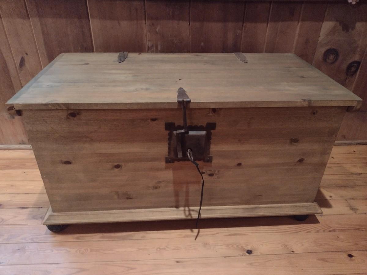 Custom Solid Natural Wood Blanket Chest on Castors. Has hole in floor and will need to be plugged as shown PLEASE NOTE:. Due to no internet connection or wireless service, all invoices must be prepaid via PayPal, Stripe, or Zelle prior to arrival at pick up. Exact change cash onsite is acceptable but absolutely no debit or credit cards at time of pick up.