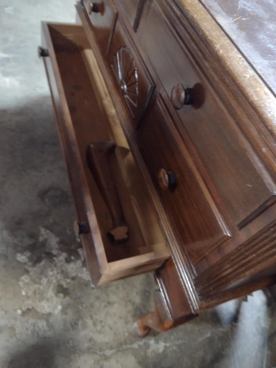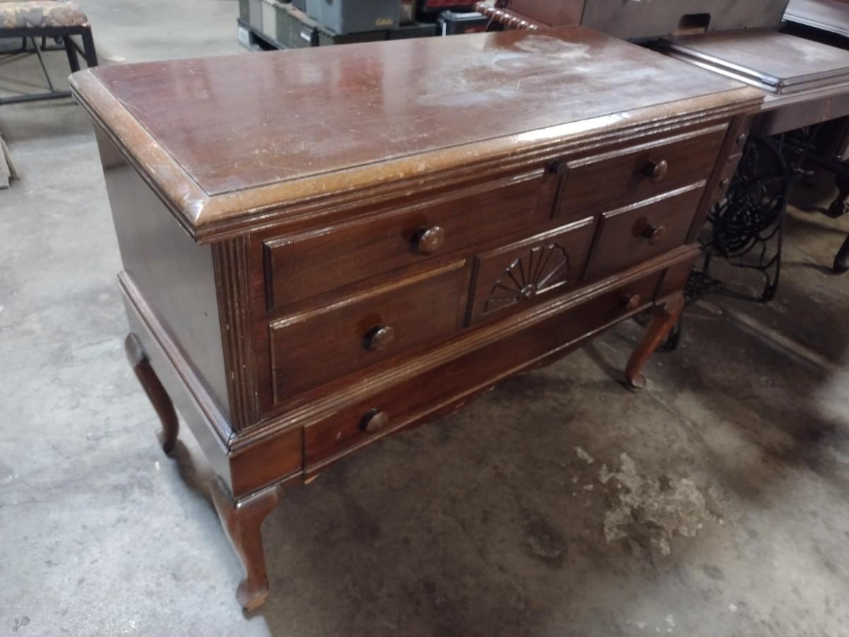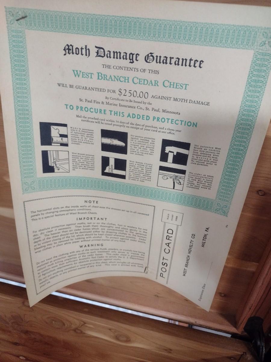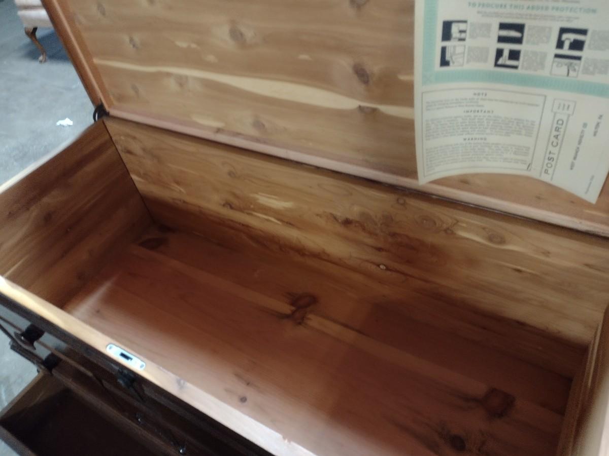 Mahogany West Branch Cedar Blanket Chest with Bottom Drawer. Back leg has damage, but missing piece is available. Some scratches and wear to the finish as shown.