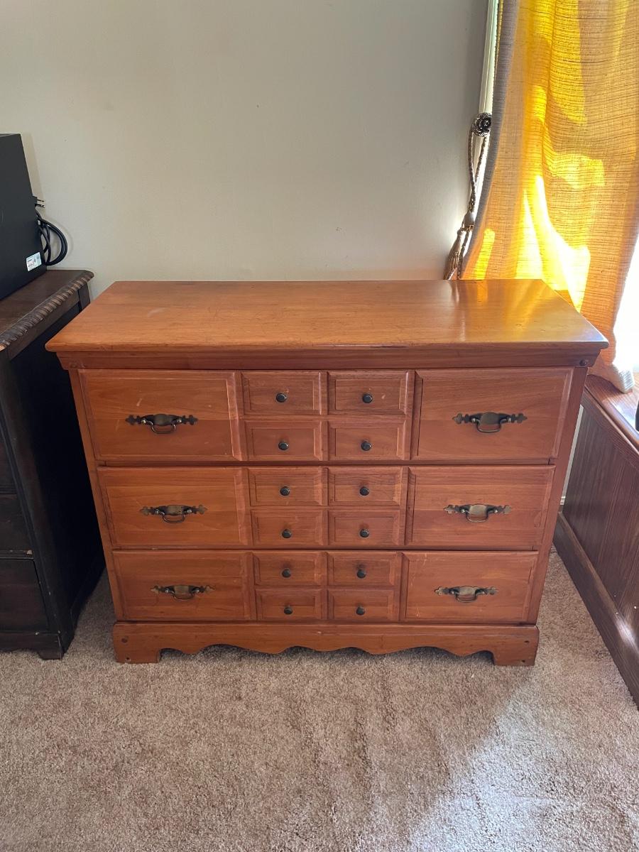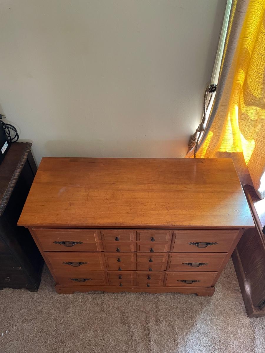 38 x 16 x 30 1/2(H). Contents in the drawers are included.