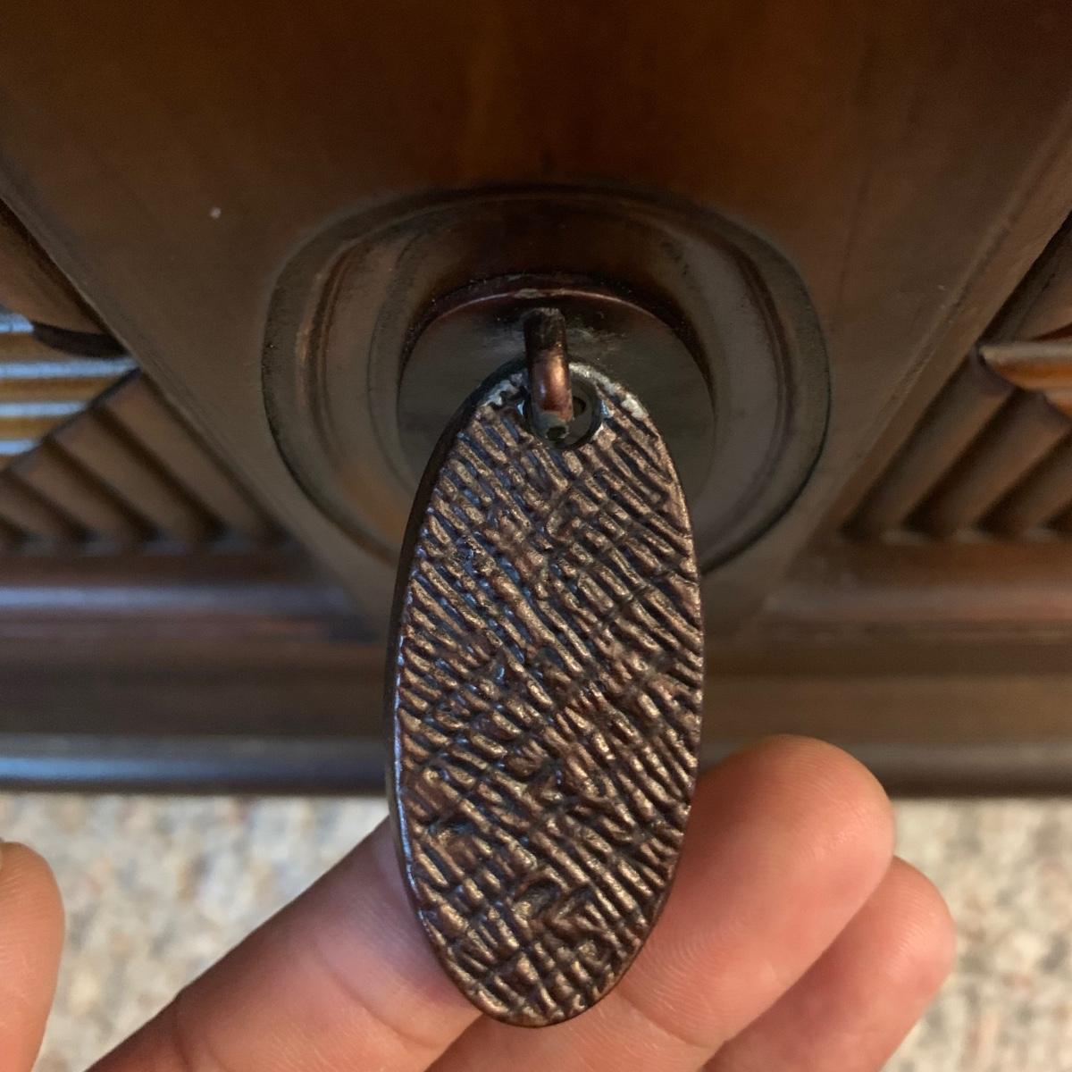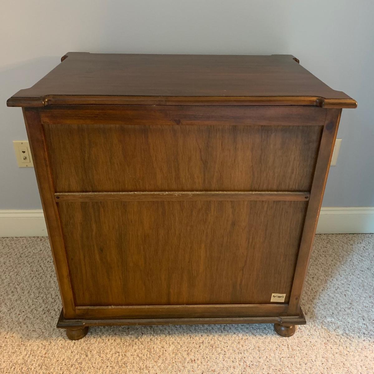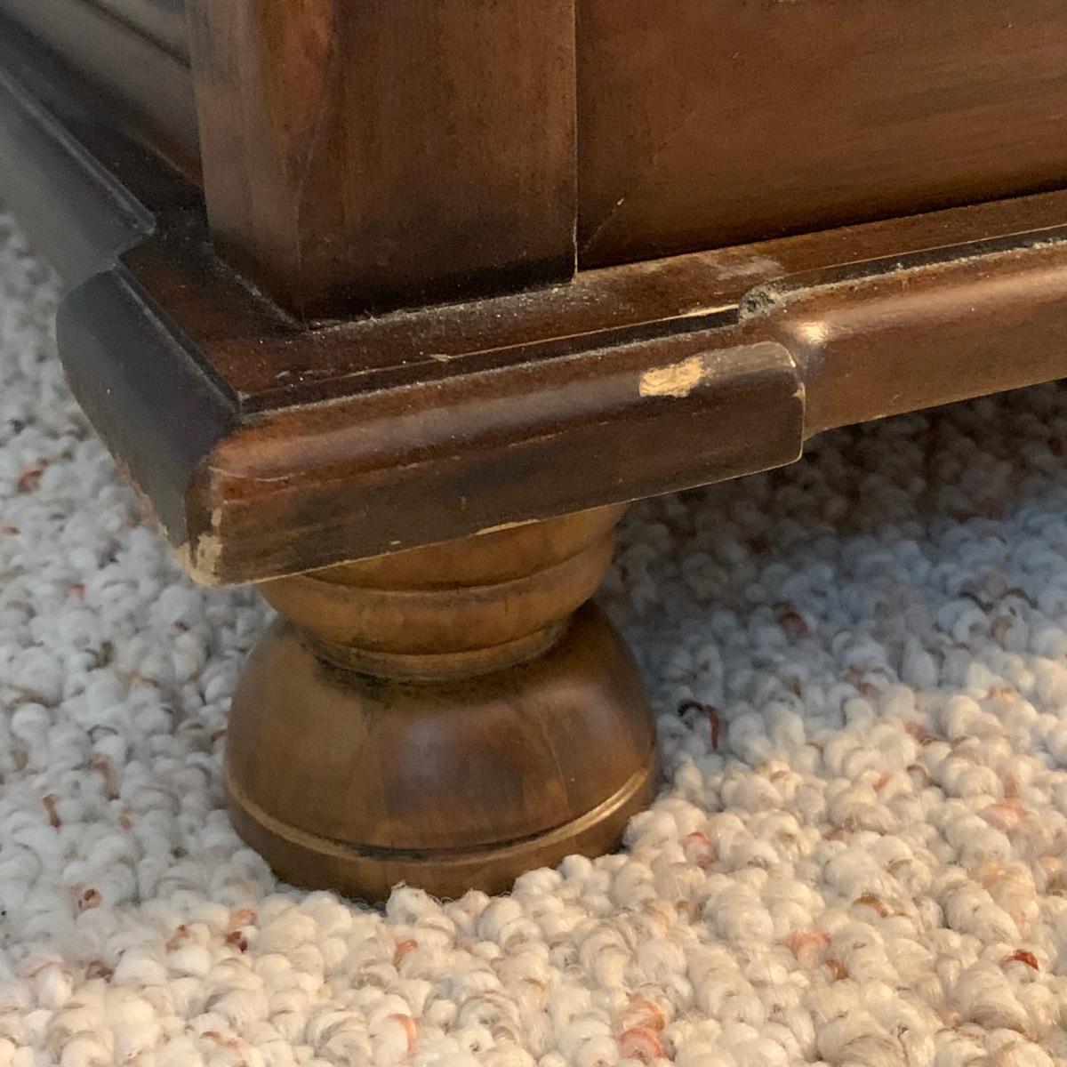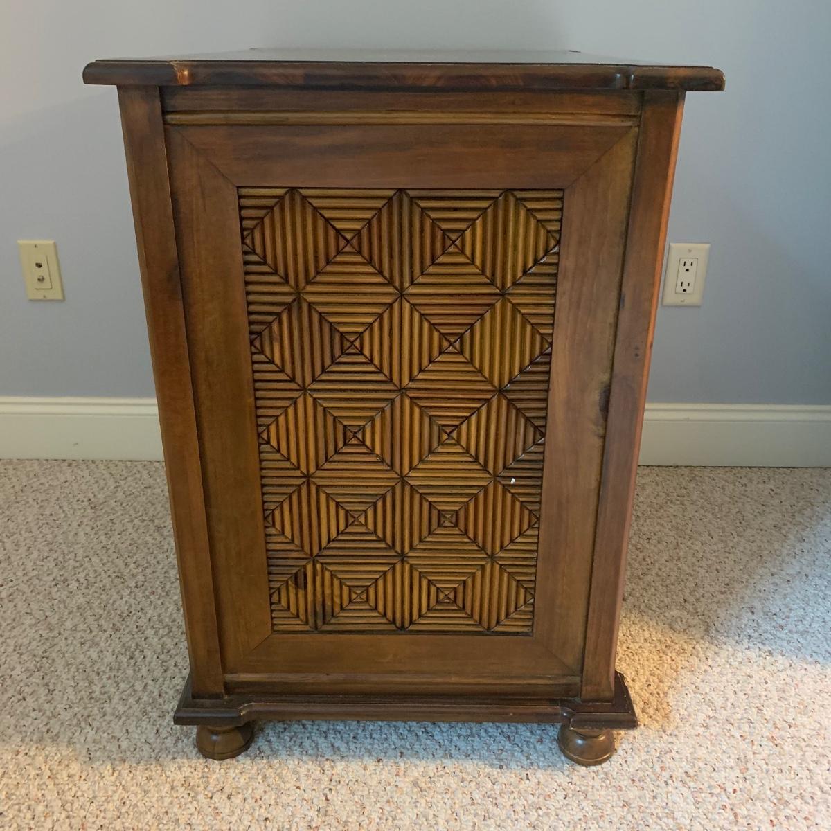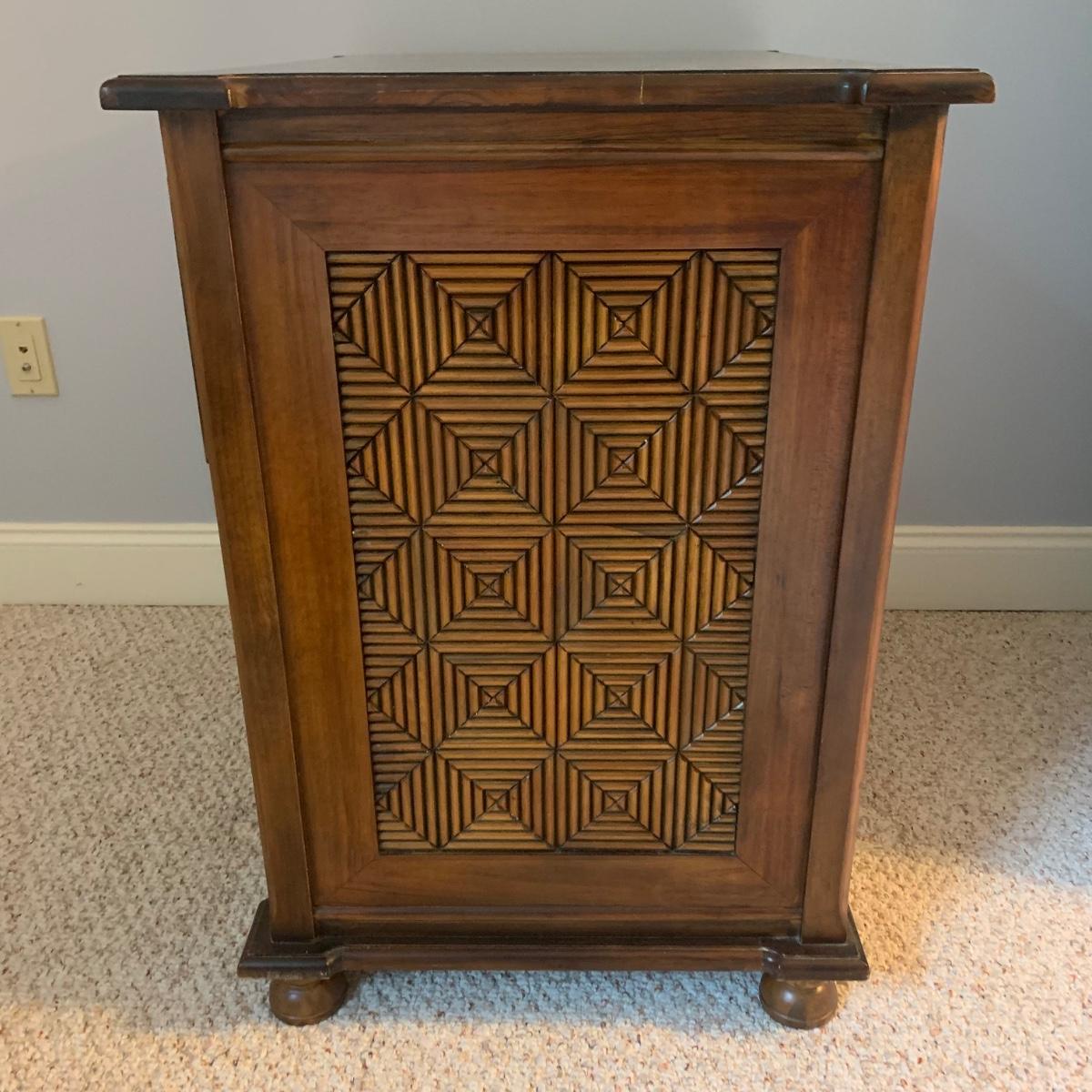 Unique chest of drawers made of wood with metal charm handles, from Pier 1 Imports. Unit is footed and measures, 30.5” x 21” x 31”H. Please see photos for more details. Local pickup only. Winning bidder must bring assistance to help move and load this item due to its weight and/or size.