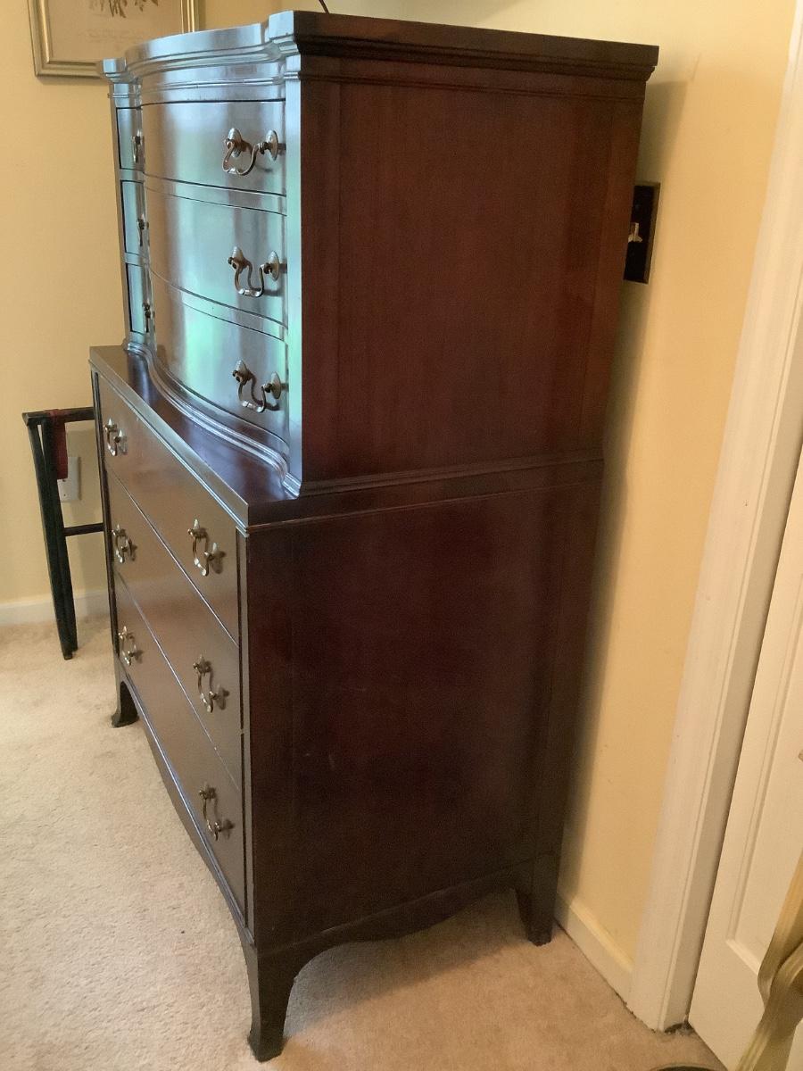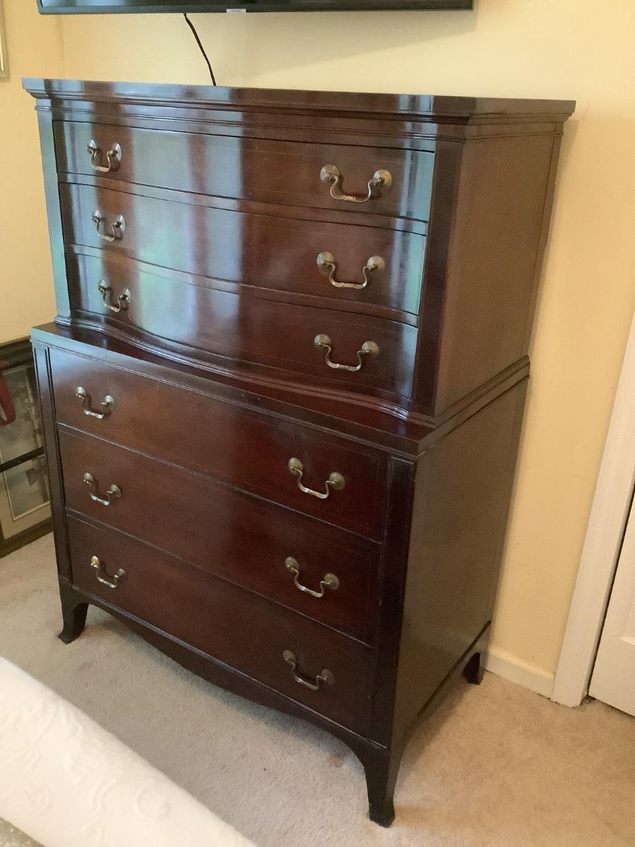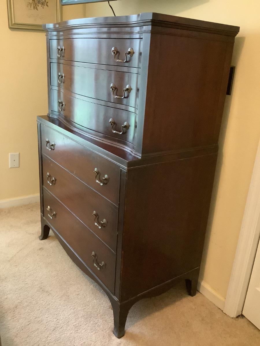 Chest on chest serpentine curvature real wood, 3 top drawers, 3 bottom drawers, 1 drawer with removable wooden dividers
