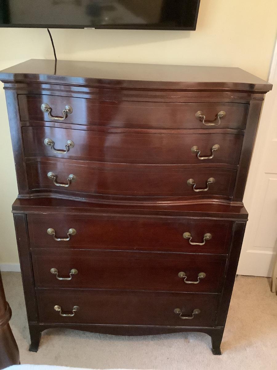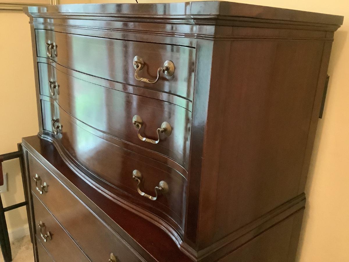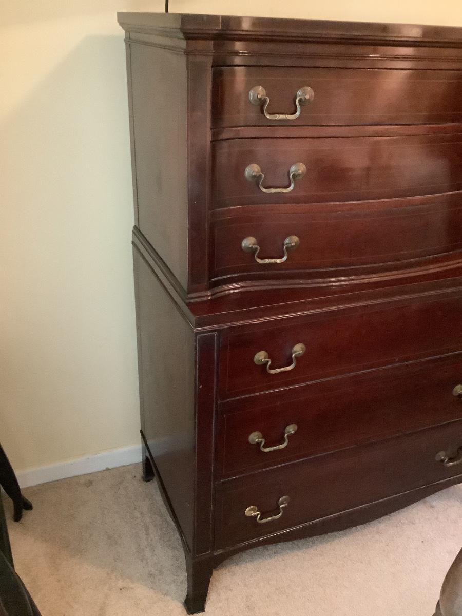 Chest on chest serpentine curvature real wood, 3 top drawers, 3 bottom drawers, 1 drawer with removable wooden dividers