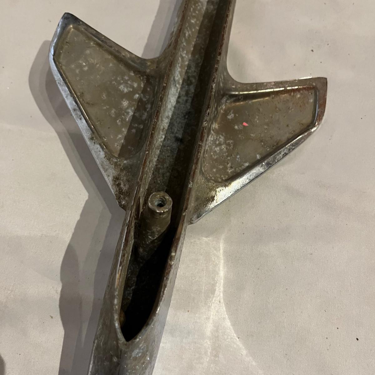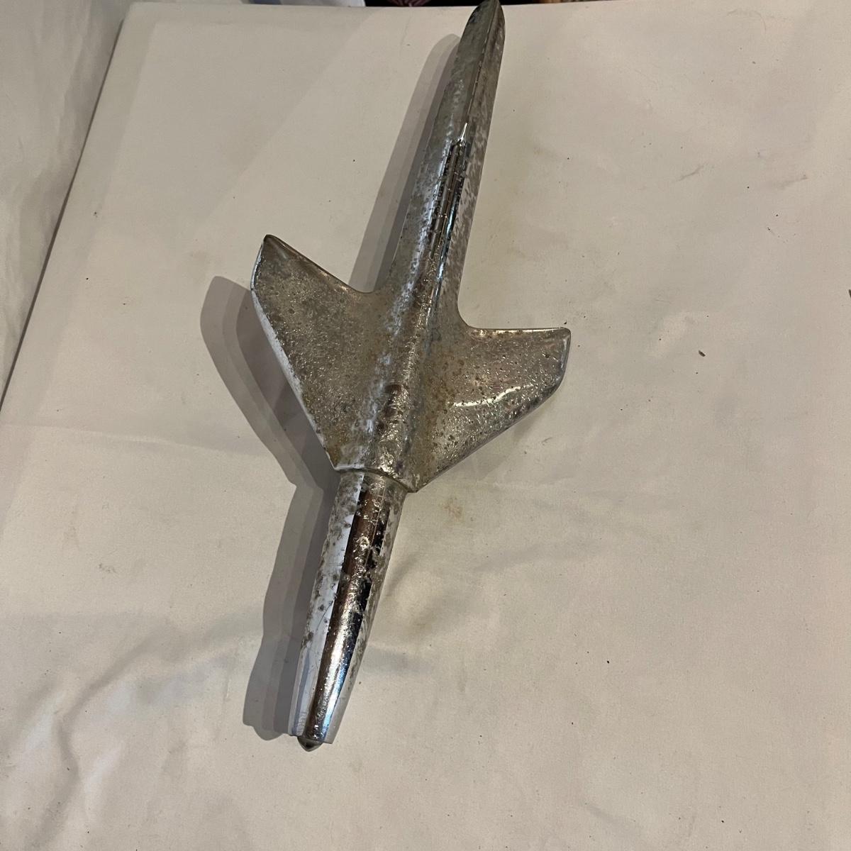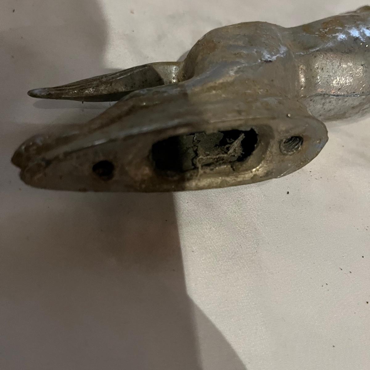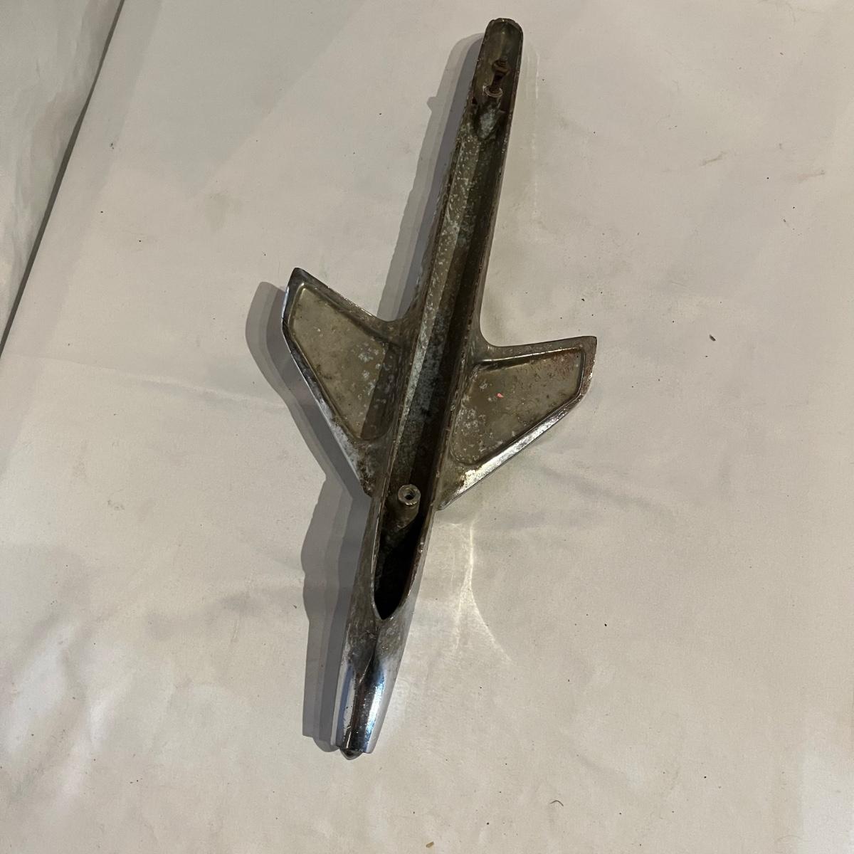 Lot includes a Chevrolet Belair hood ornament and a horse ornament. Both items are pitted. Belair ornament measures 6.5” x 16.5” x 2.5”.