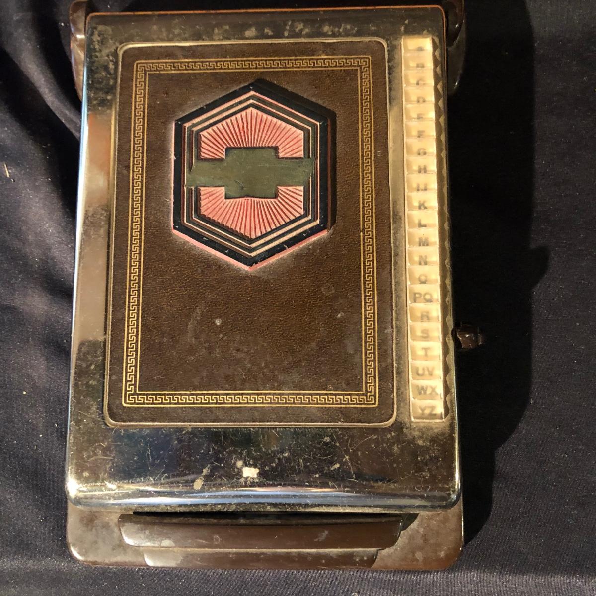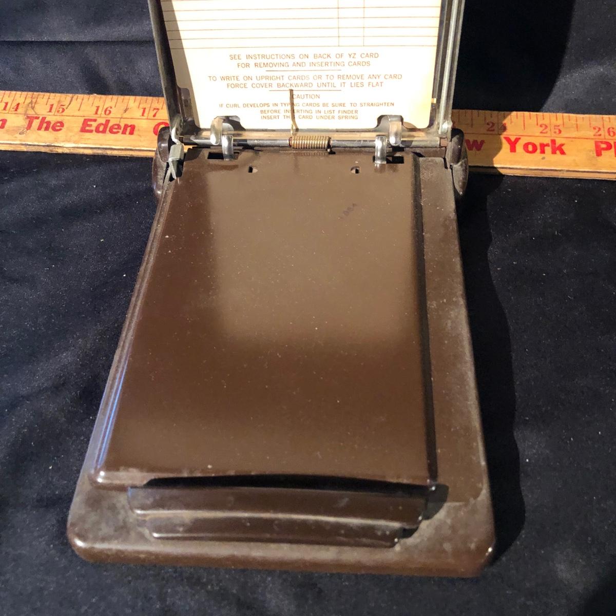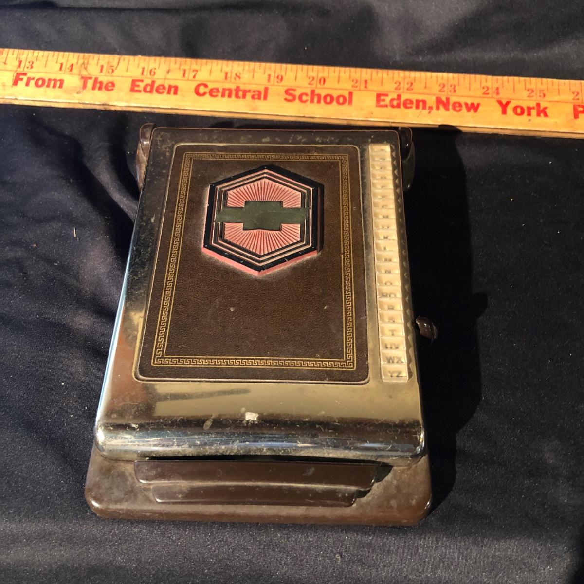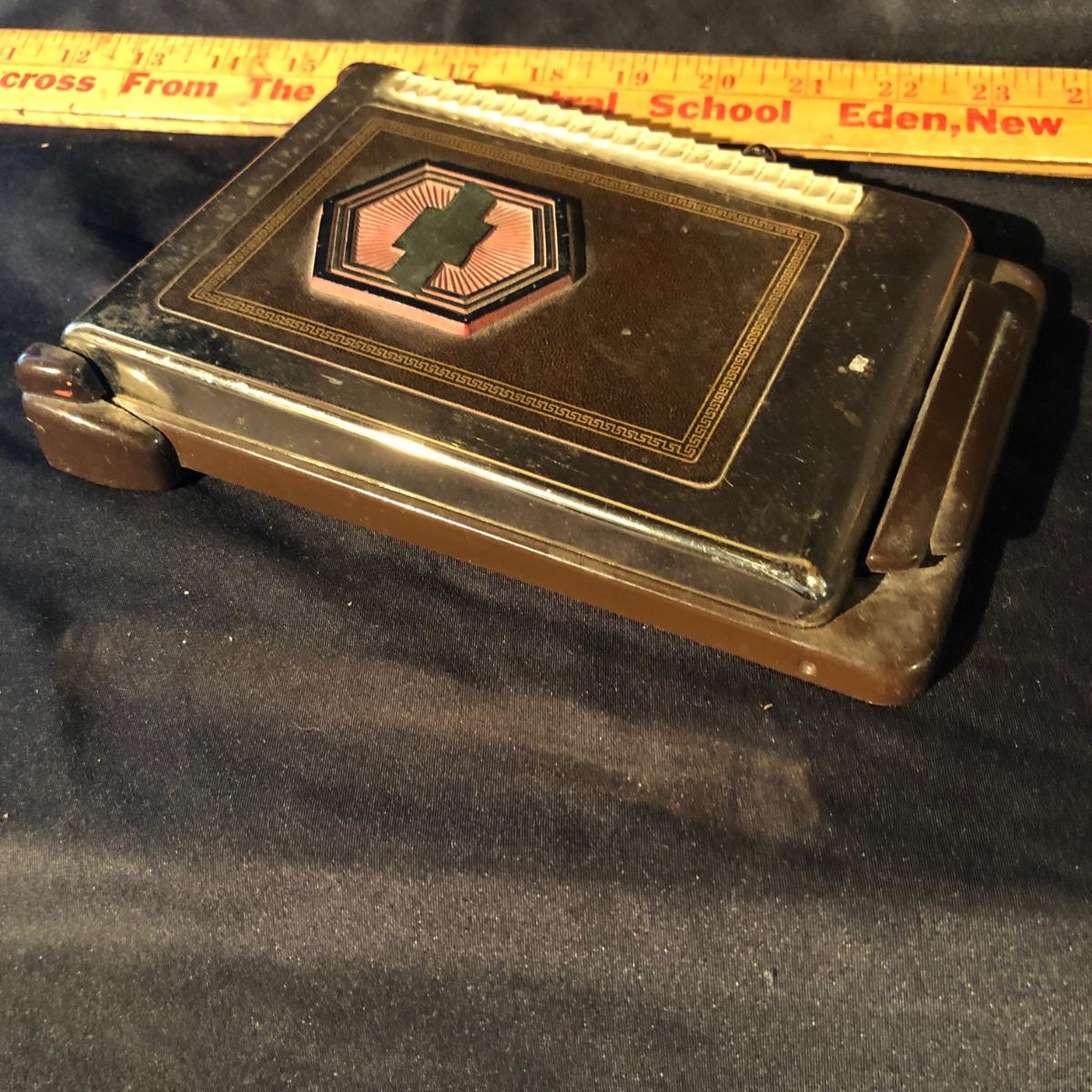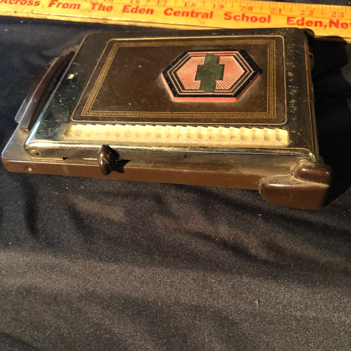 Fun Chevy collection here. An ashtray (7” x 7”,), a list finder (5” x 8”) and a wooden yardstick. Note the chip on the edge of the ashtray. On the back of the list finder it reads, “Bates List Finder Cavalier Model” “Made by The Bates MFG Co. Orange NJ USA PAT. Pending.” This would probably make a fine Rolodex. Lot also features a 1942 catalog and a 1960 Truck Shop Manual. Shipping Available.