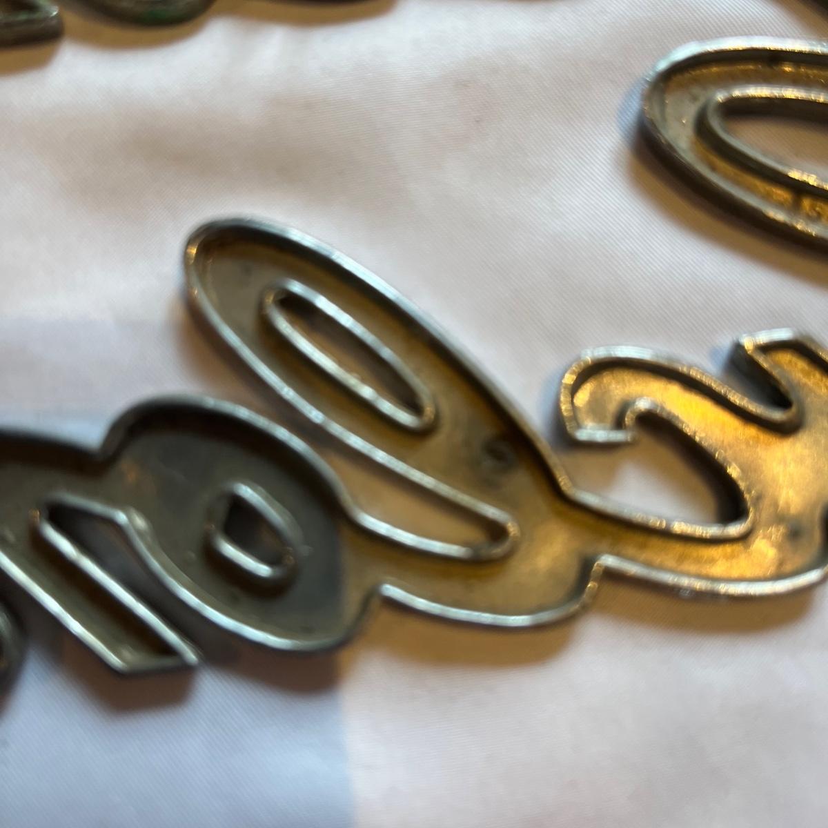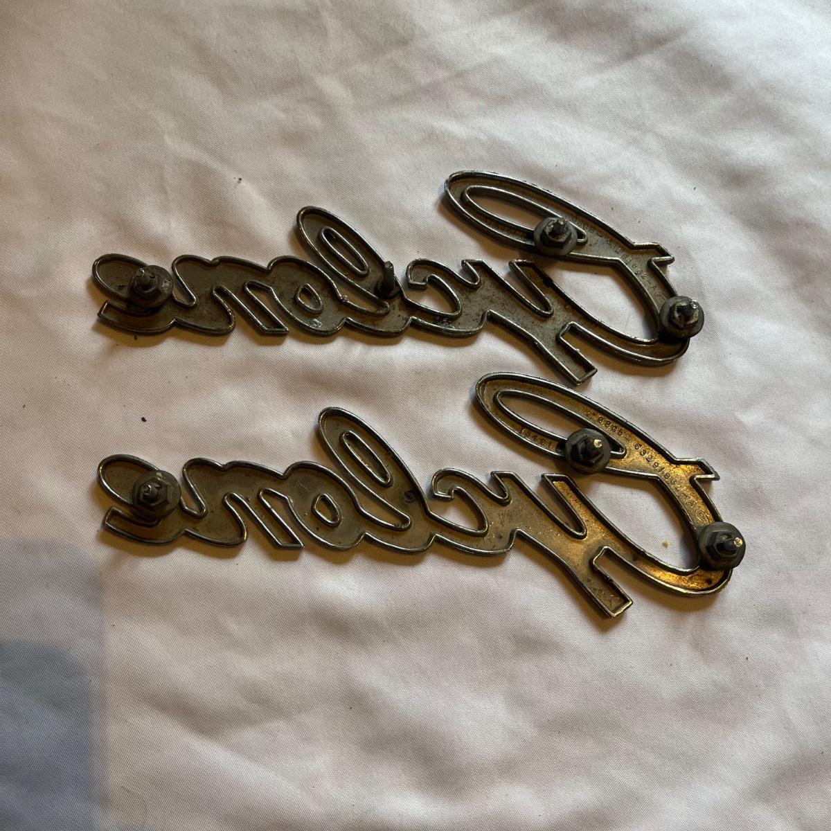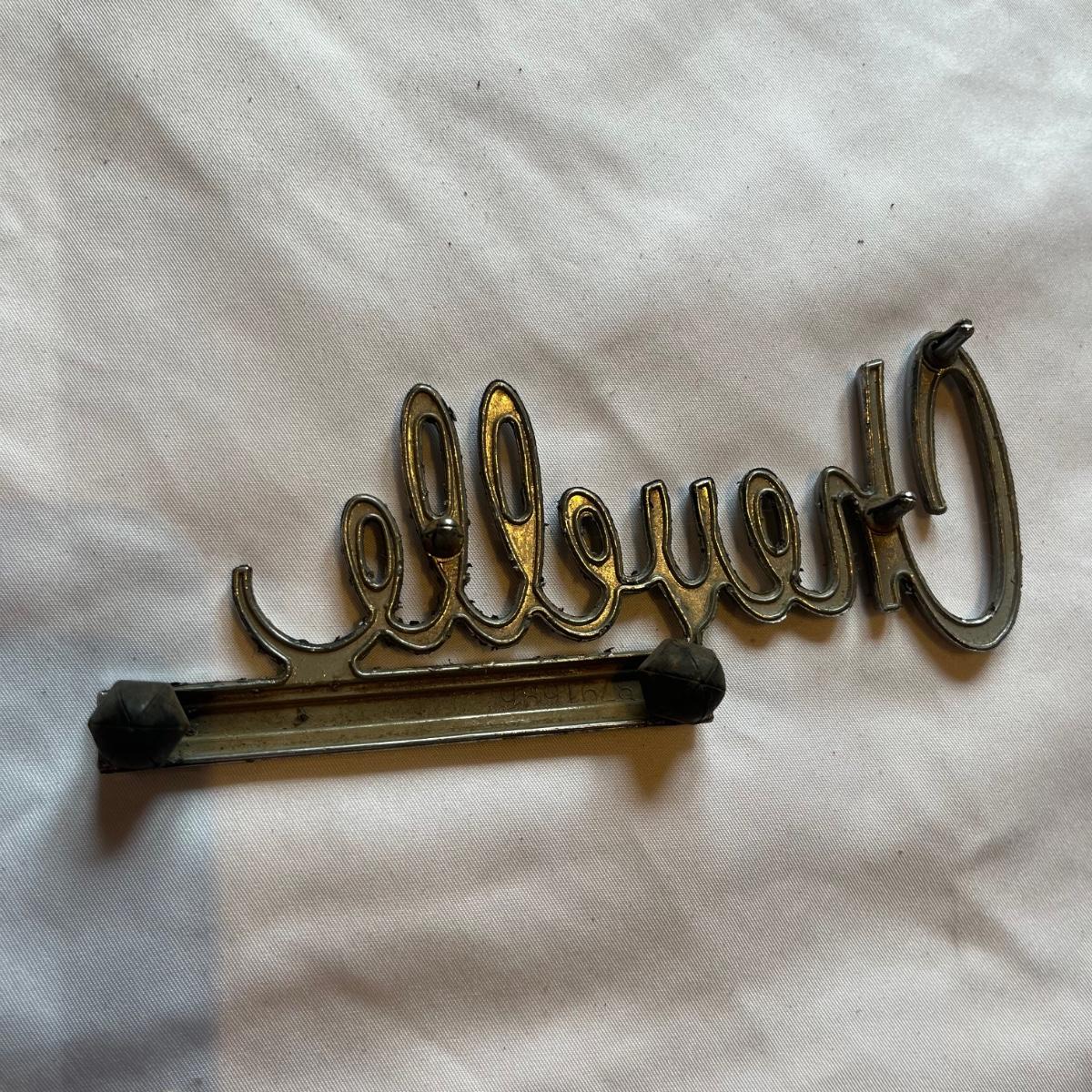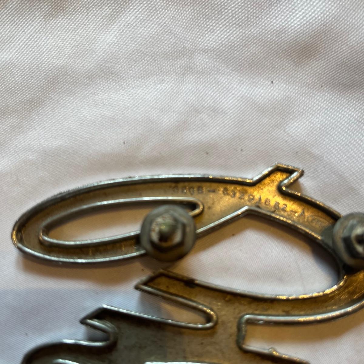 Lot includes a metal Chevelle trunk emblem and a pair of Cyclone metal emblems. All emblems appear to be OEM. Cyclone emblem is missing one pin.