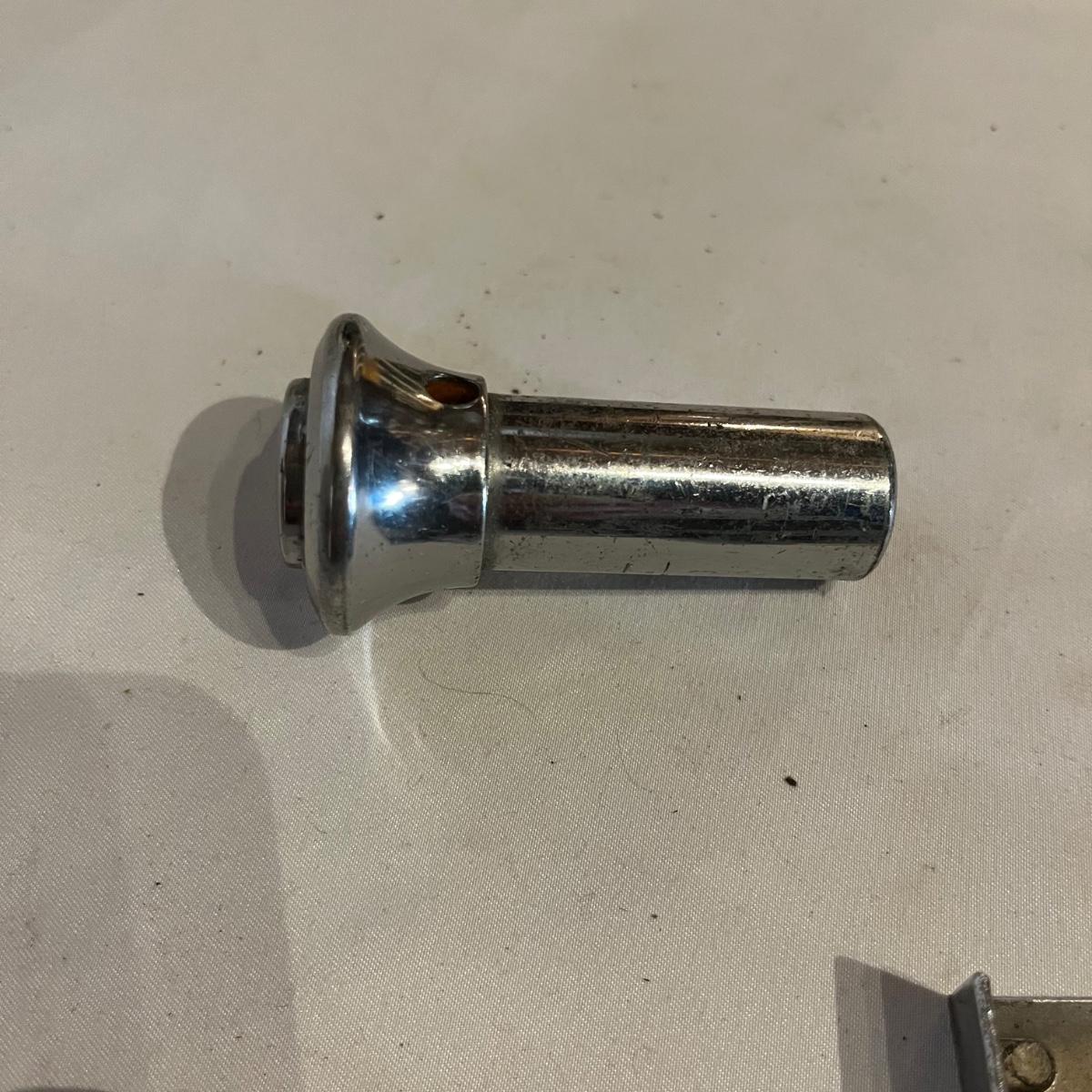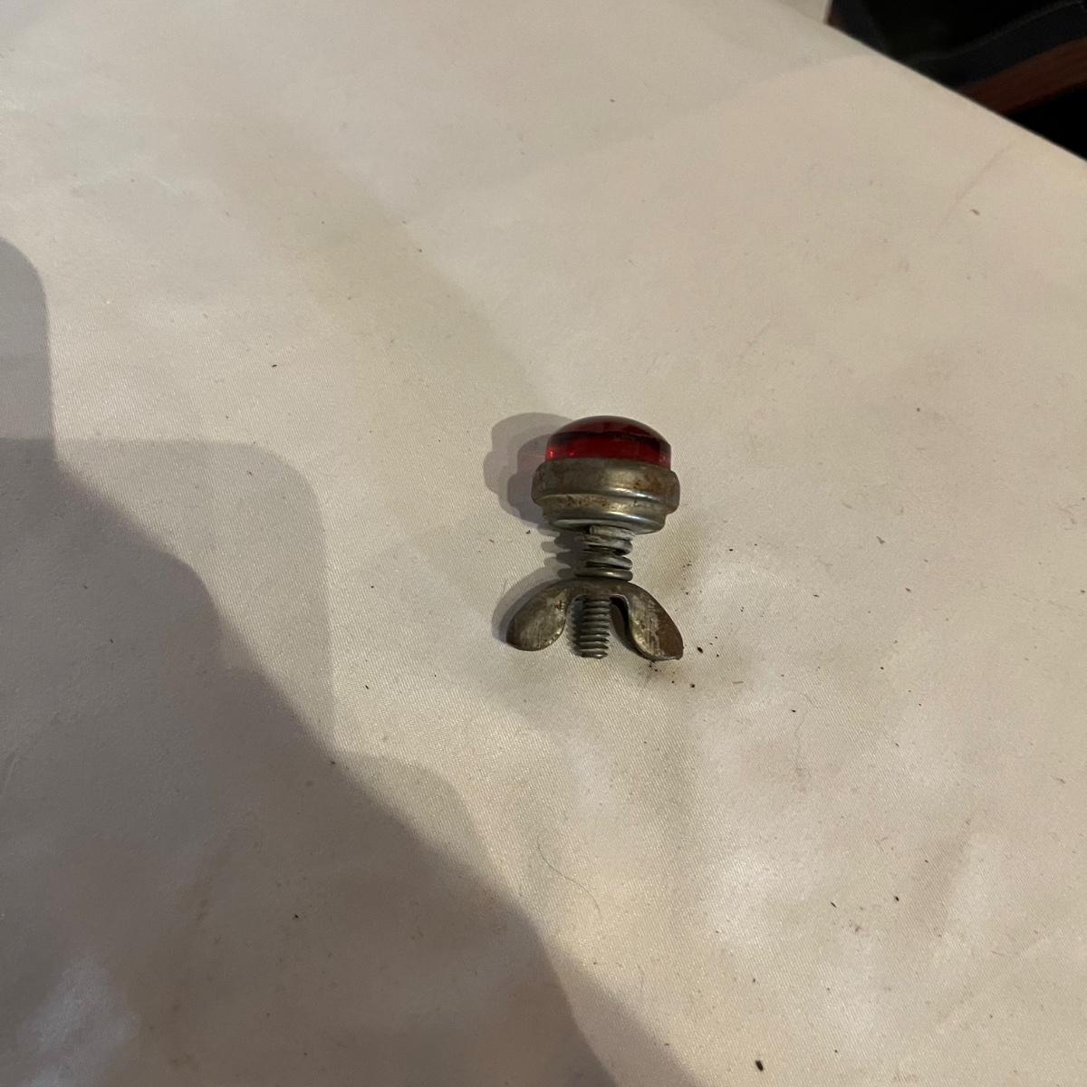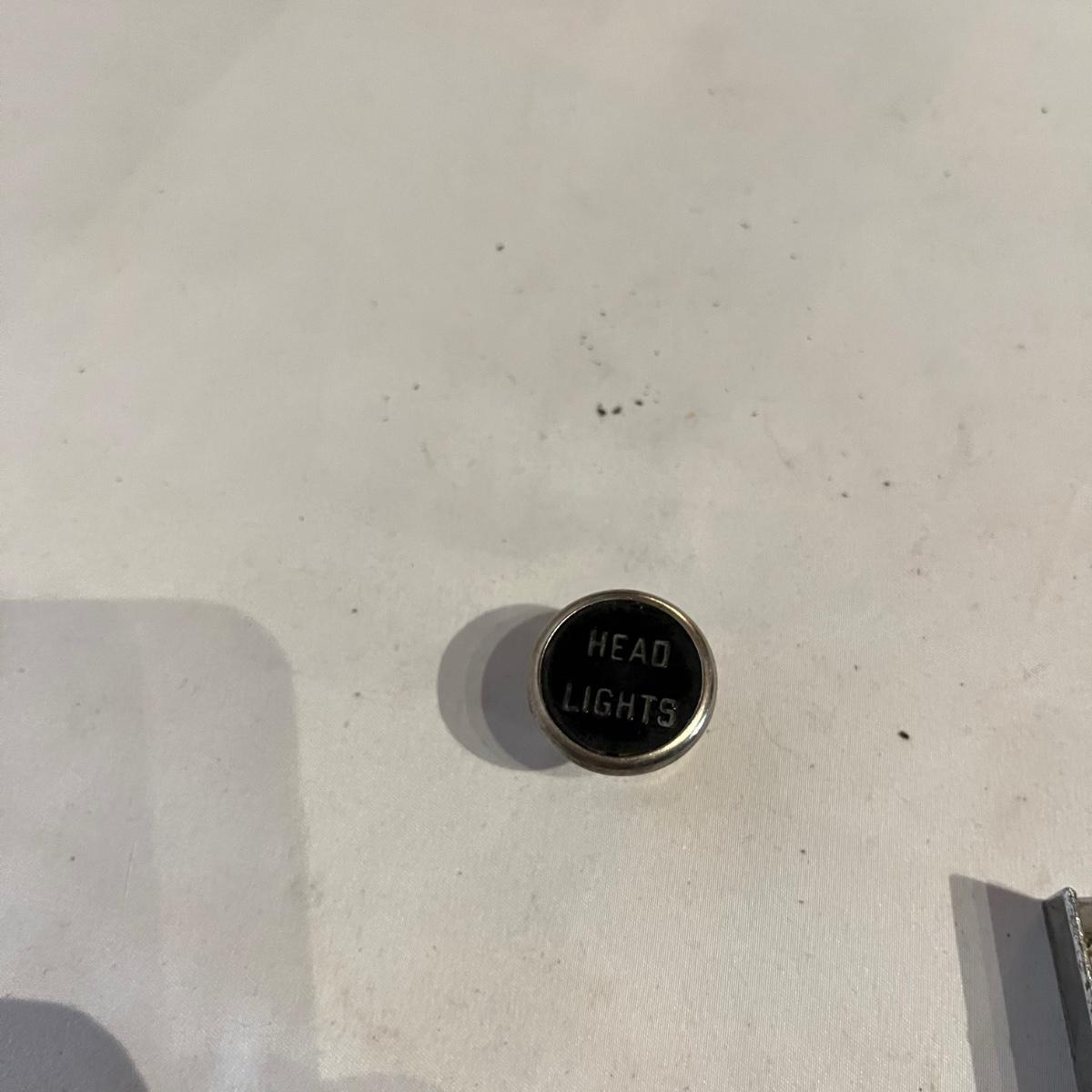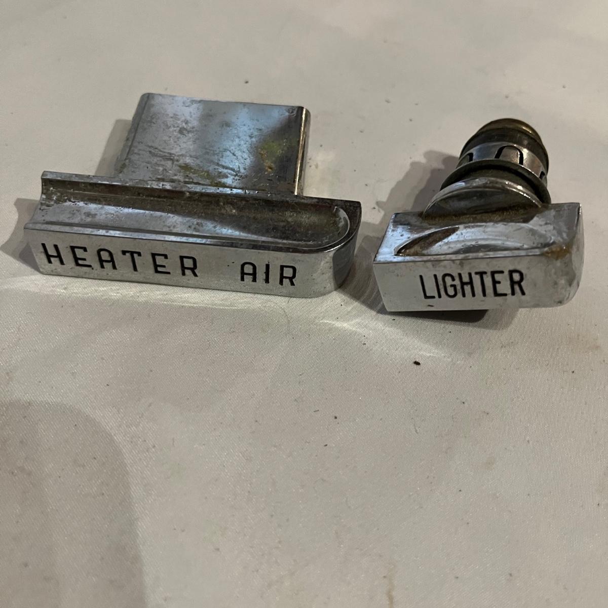 Lot includes a VIN tag for a 1939 Chevrolet, data tag, glass reflector license plate bolt, head light knob, lighter and more.
