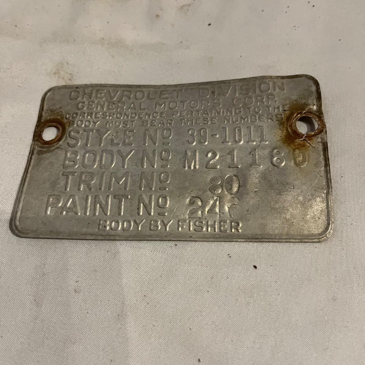 1939 Chevrolet VIN Tag & More (LF-MG)
