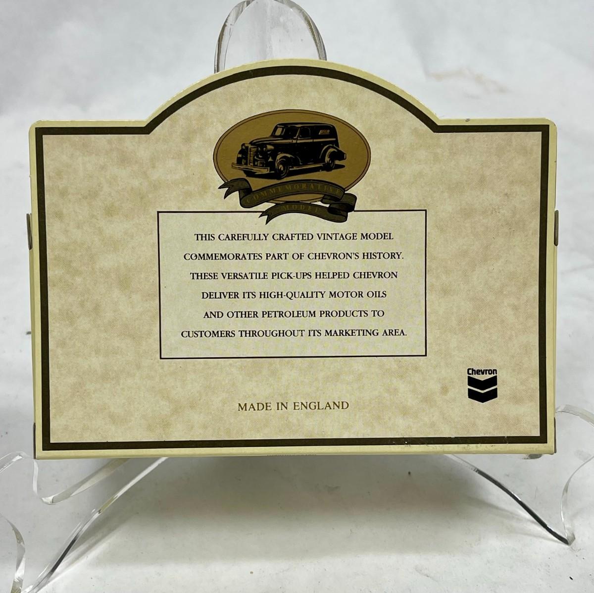 Chevron RPM MOTOR OIL 1939 CHEVROLET. PICK-UP Die Cast Metal Replica Made in England (YD#CC13B)