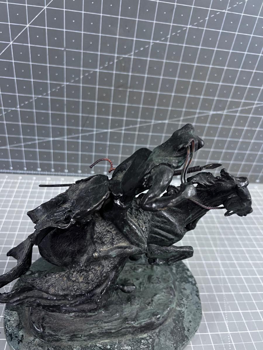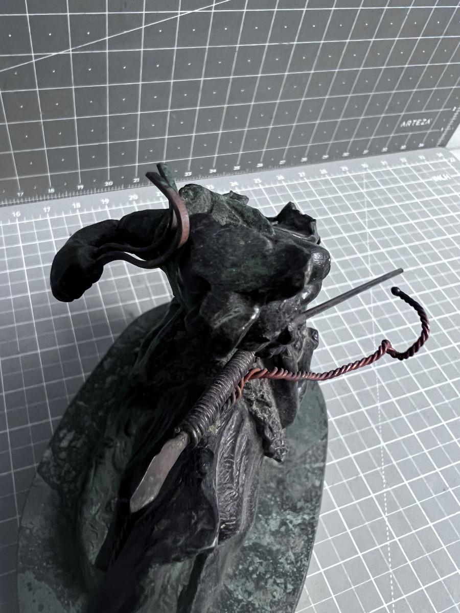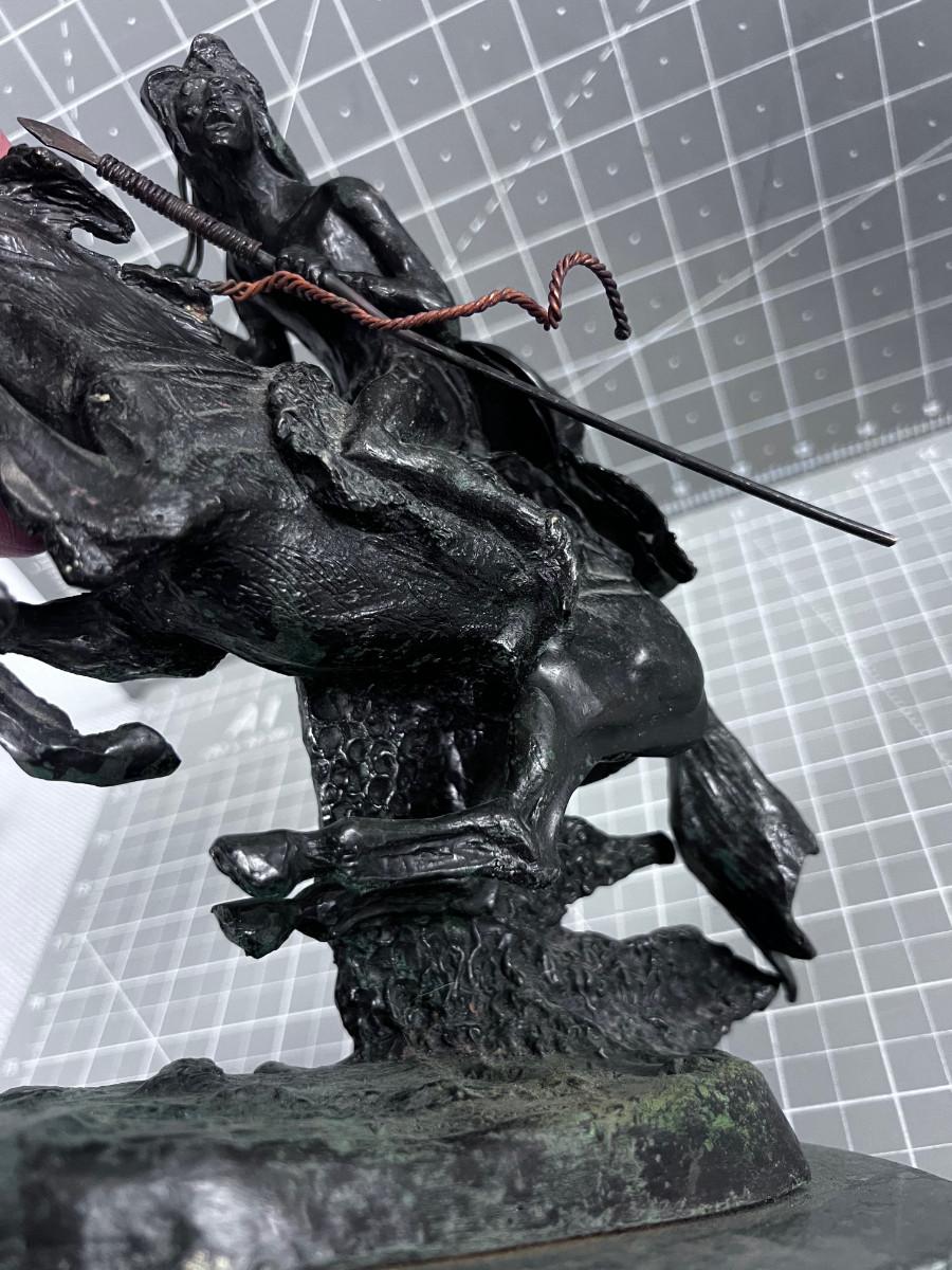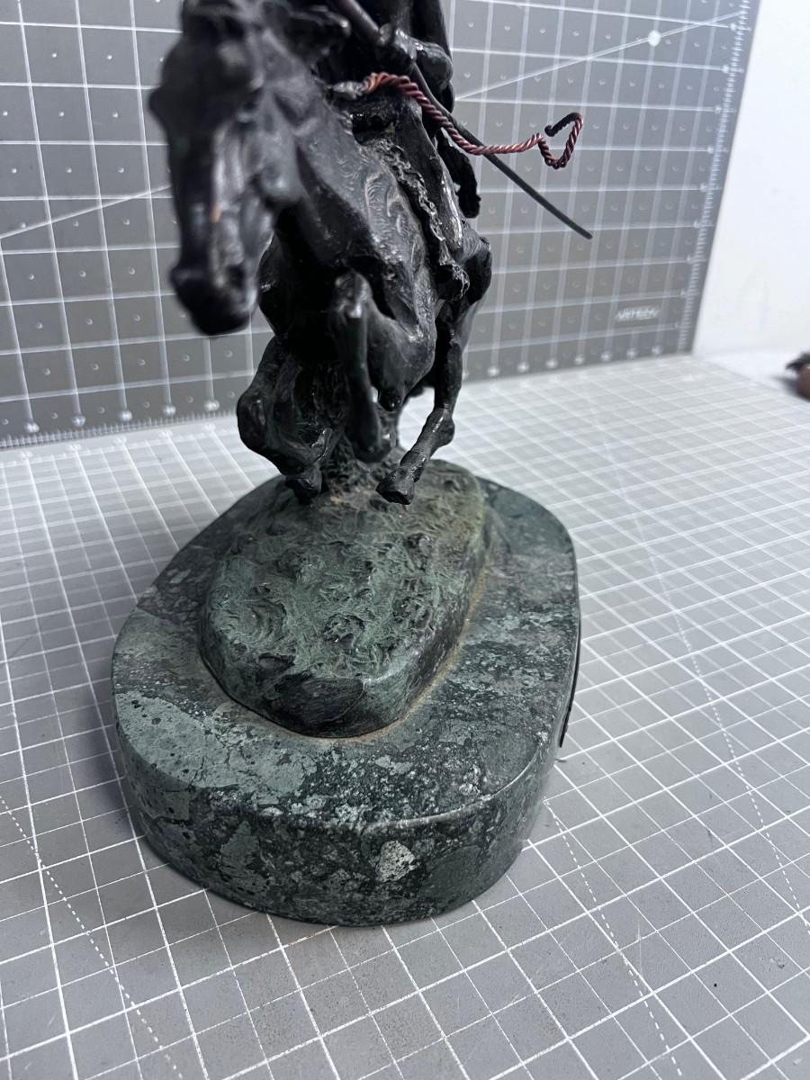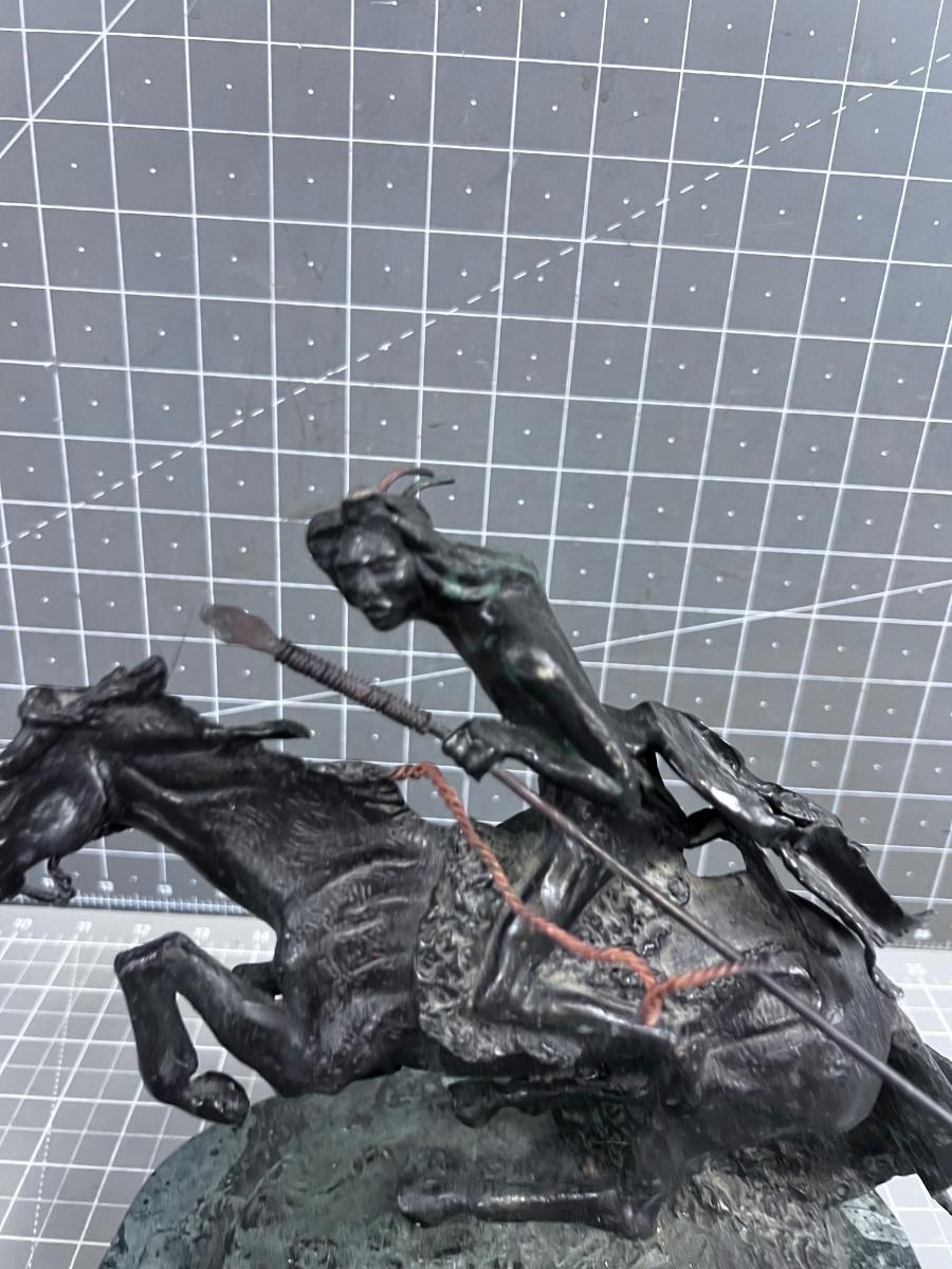 "Cheyenne" by Fredrick Remington Bronze Sculpture Marble Base Statue is in good condition a bit dusty, stands about 12" tall overall.