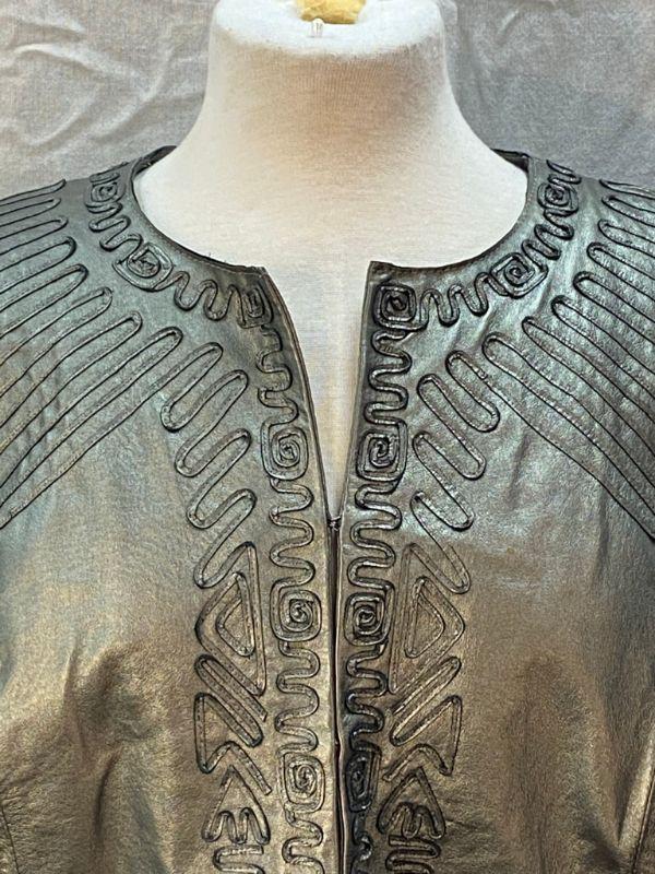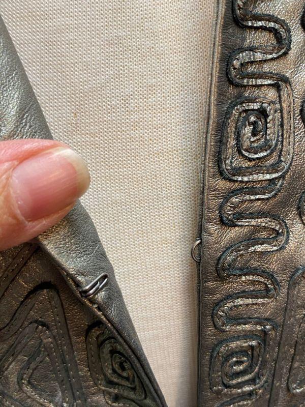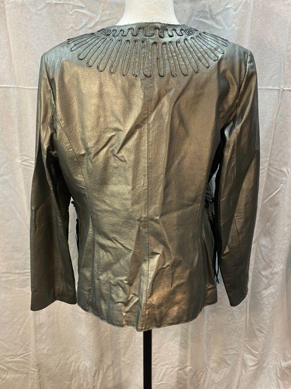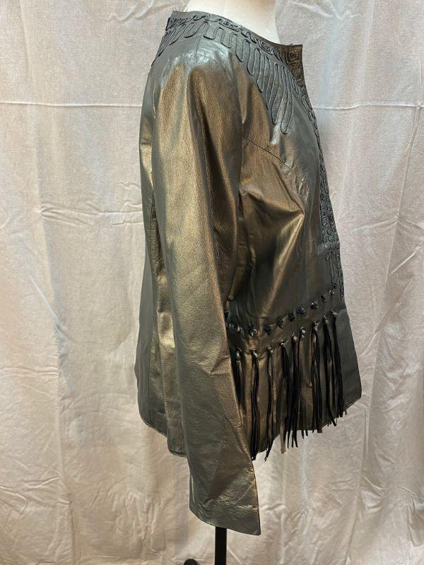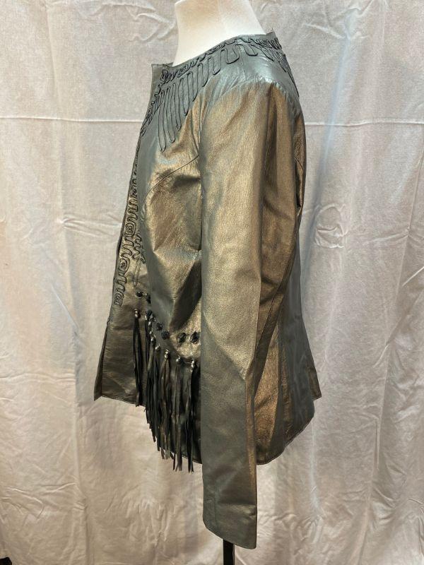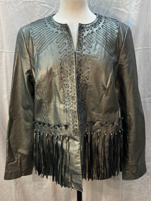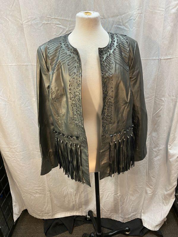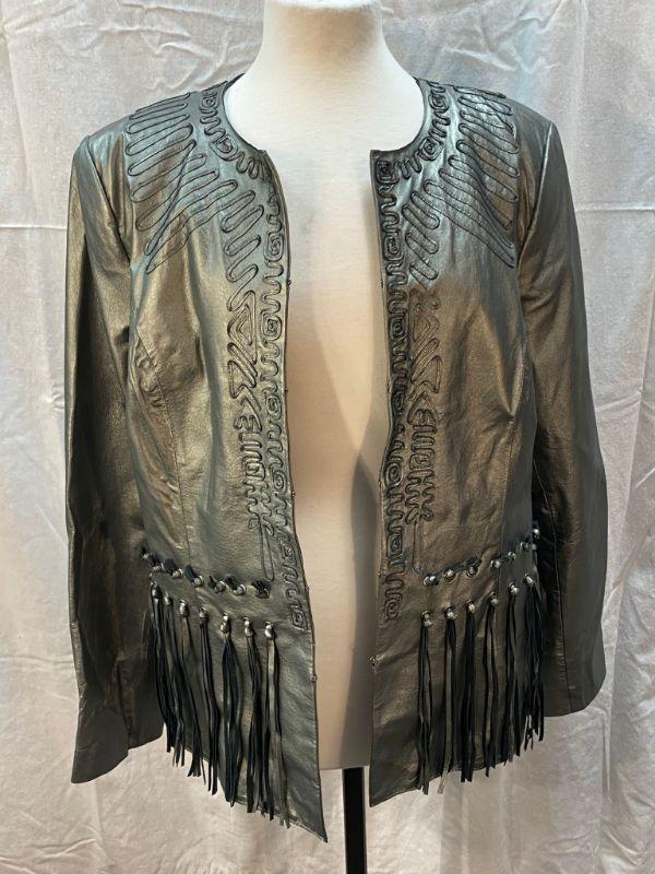 Chi by Falchi Silver Metallic Fringed Leather Jacket Size XL YD#020-1220-02133