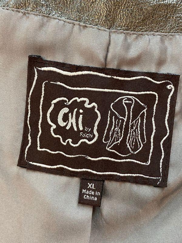 Chi by Falchi silver metallic leather jacket. 100% leather. Fringed details. Hook and eye closure down the front. Size XL. In good condition.