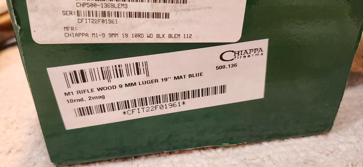 Please see pictures for condition Guns are local pick up only, Guns CAN Not be Shipped With valid Kansas ID/ Driver's license Chiappa Firearm M! Rifle Wood (mm Luger 19" Mat Blue