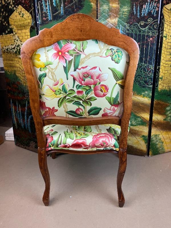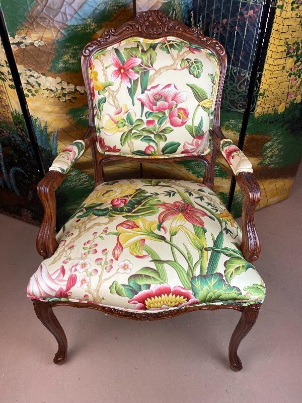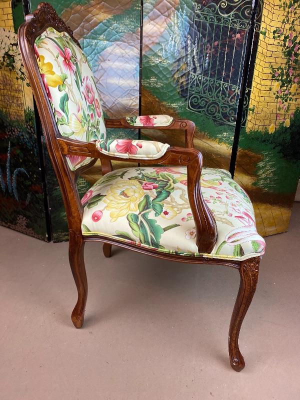 Lot # 140 -Chic Carved Side Arm Chair Bold Upholstery