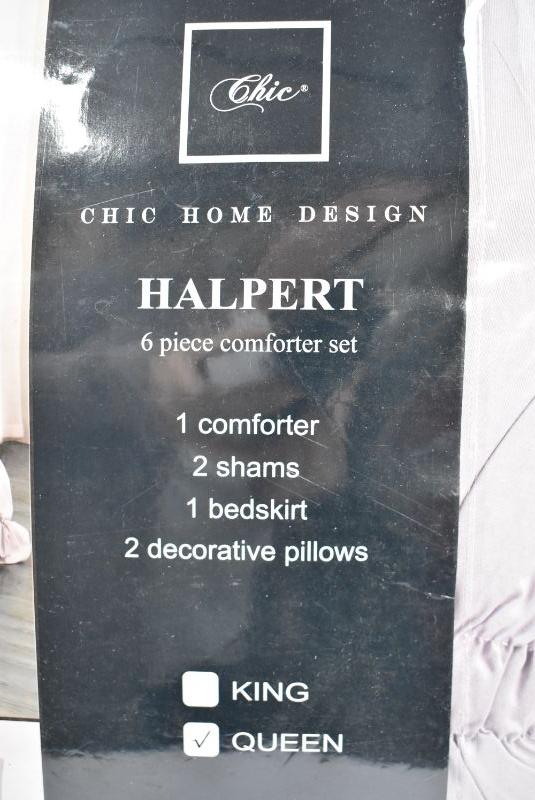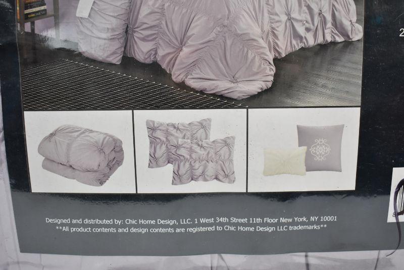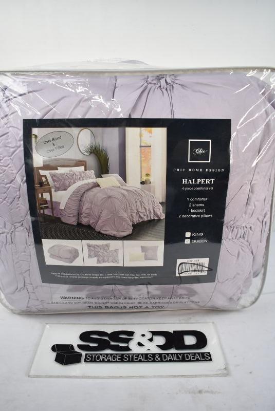 Chic Home 6-Piece Pinch Pleat Ruffled Comforter Set, Queen, Purple, $86 Retail
