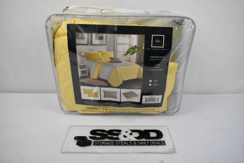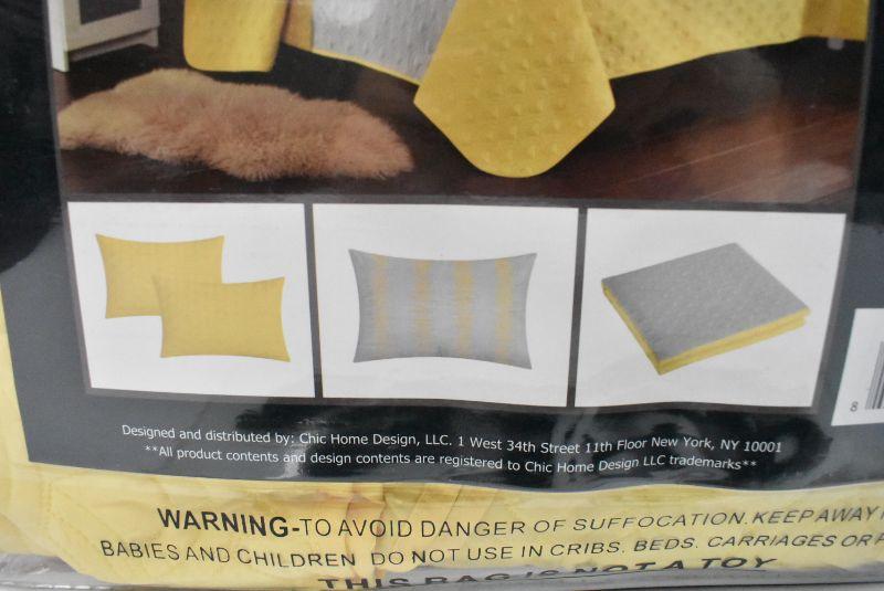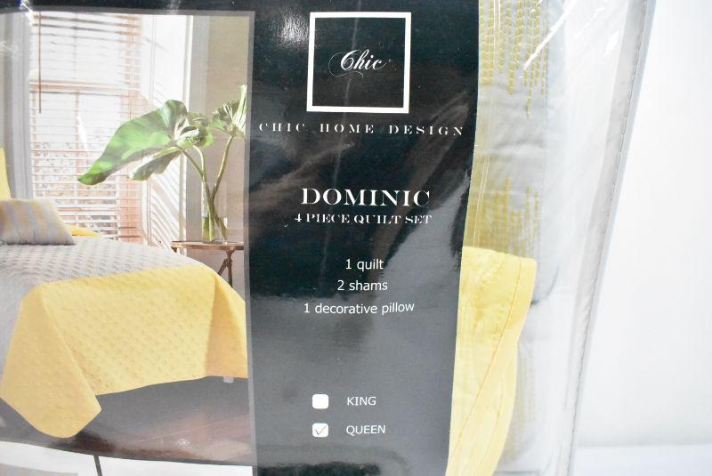 Chic Home Design Dominic 4 Piece Quilt Set for Queen, Gray and Yellow - New