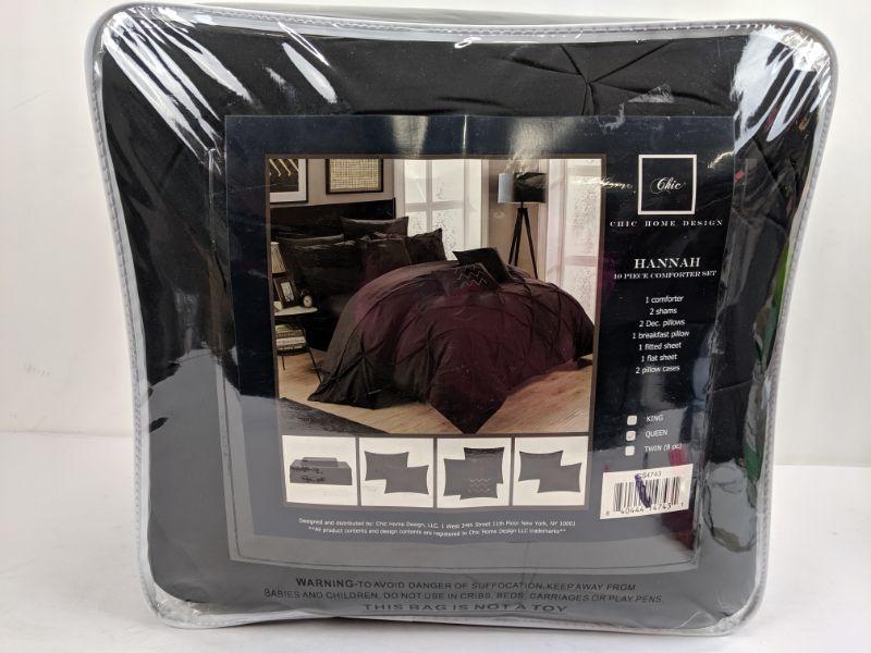 Chic Home Design Hannah 10 Piece Comforter Set, Black, Queen - Open, Missing Decor Shams