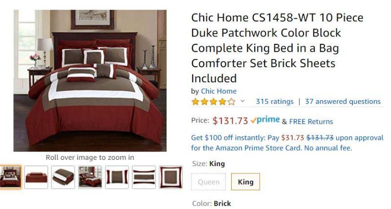 Chic Home Duke Design King Size Comforter Set, 10 Pc - Complete, $131 on Amazon