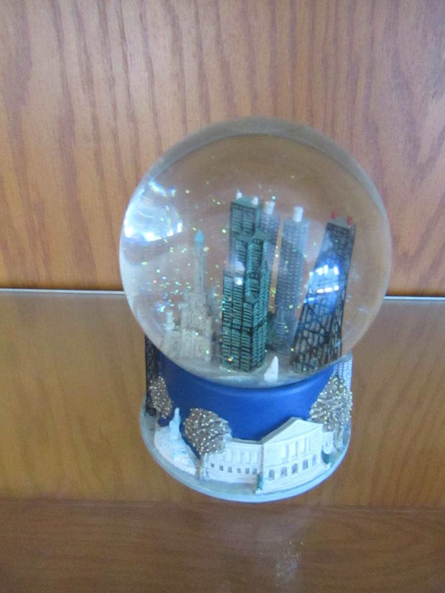 Chicago Design Water Globe- Plays 'Chicago'- Approx 6" Tall