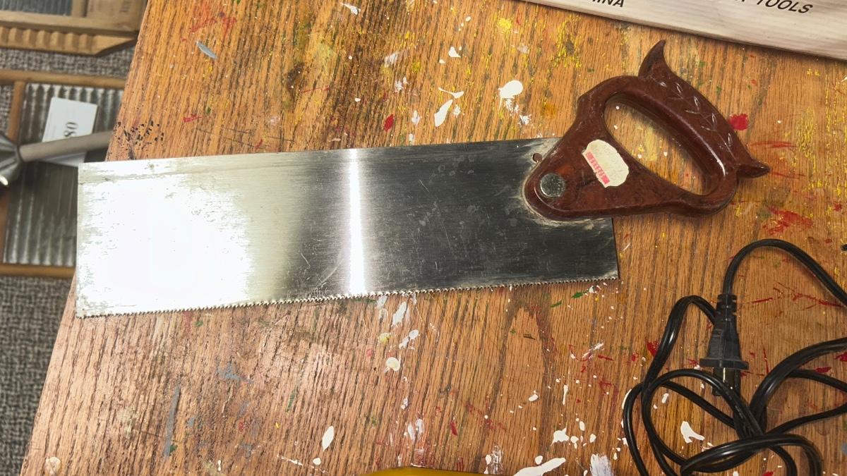 CHICAGO ELECTRIC DETAIL SANDER, MITER SAW FROM SCAGS, AND AN ADJUSTABLE CARPENTER SQUARE