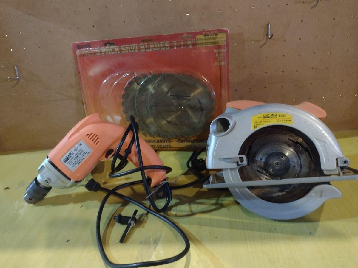 Chicago Electric Power Drill and Circular Saw with Extra Blades