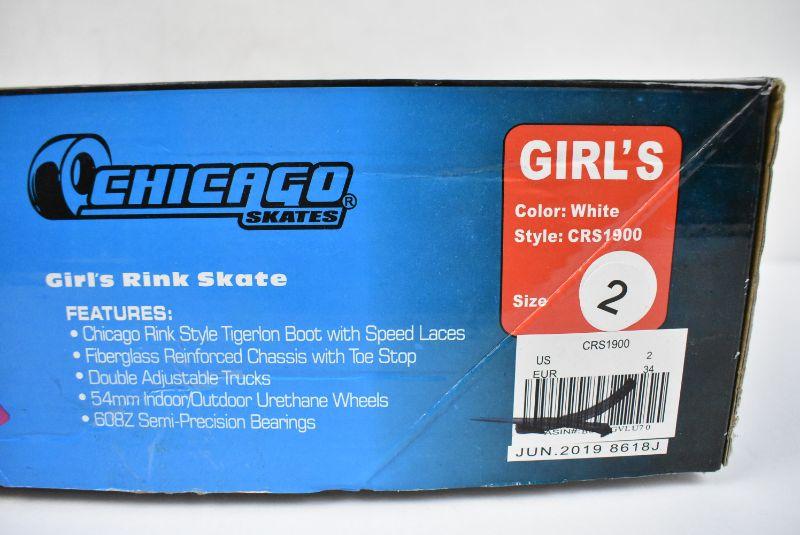 Chicago Girls' Classic Quad Roller Skates White Junior Rink Skates, Size 2 - New