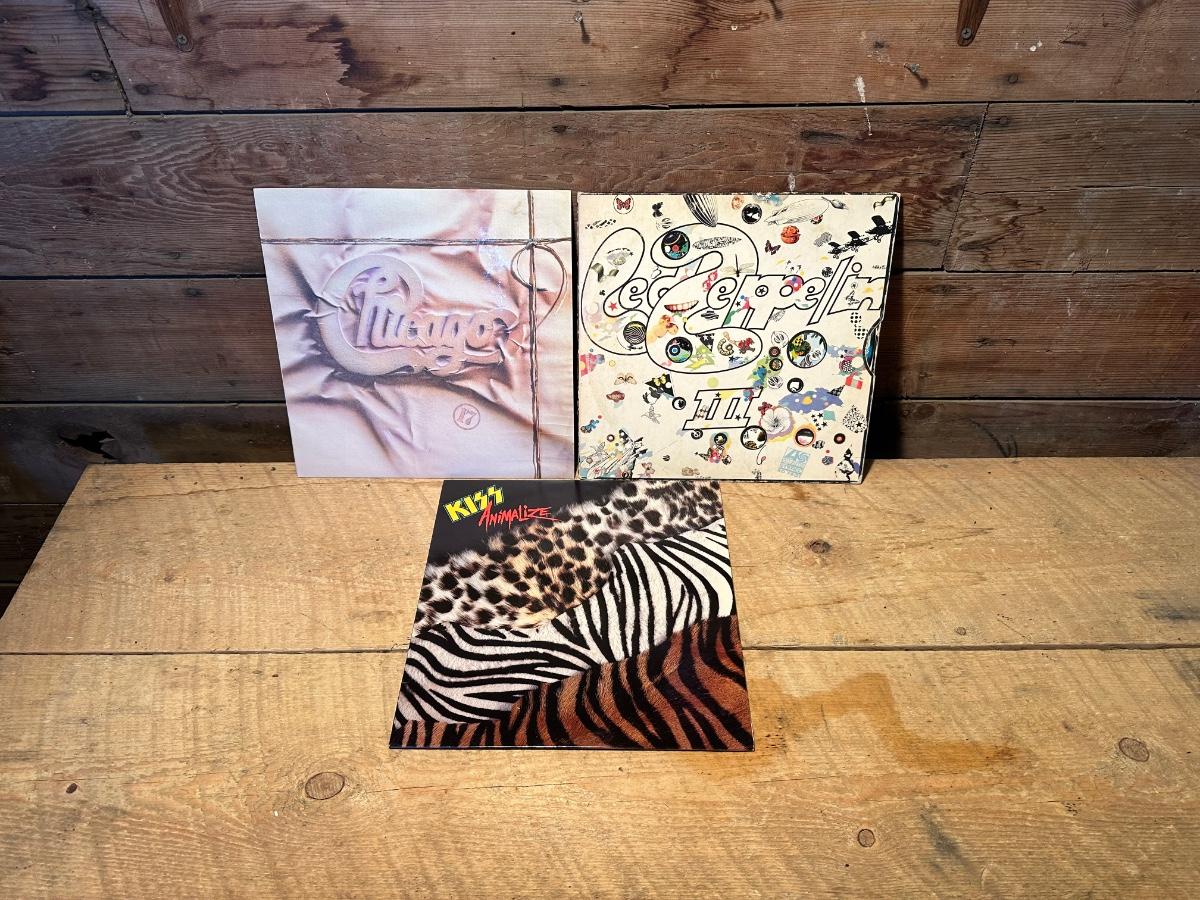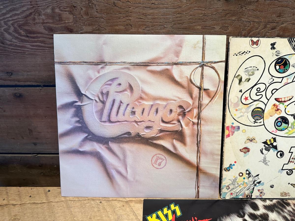 CHICAGO, LED ZEPPELIN AND KISS VINYL RECORD ALBUMS