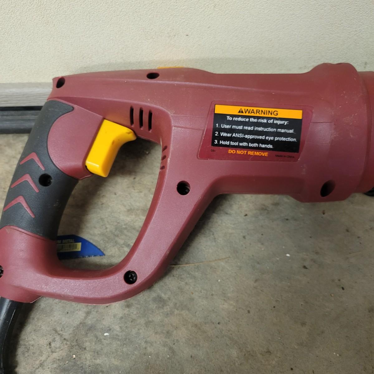 A Chicago Electric Power Tools reciprocating saw in good condition with no notable damage. This is a 4.5" saw with an extra blade. It has a 6 amp motor with a 7/8" stroke. Item was tested and works. Measures approximately 21" x 4" x 6.5". Shipping available