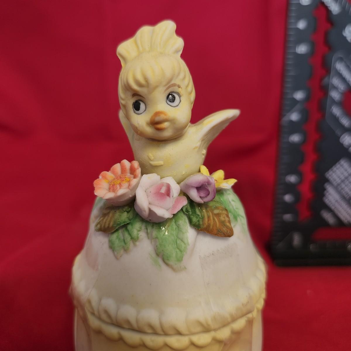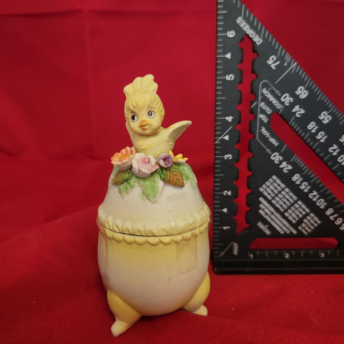 Chicken on an egg. Jewelry case.