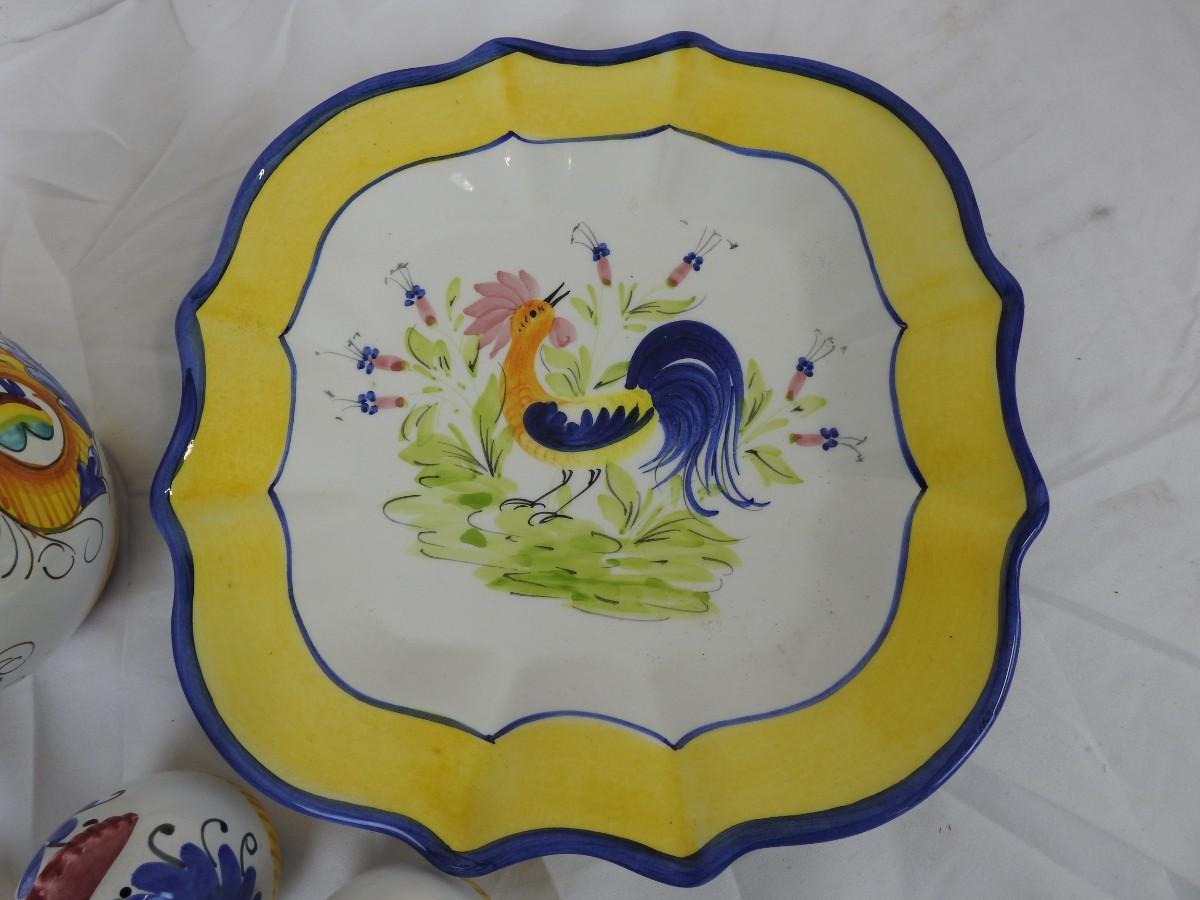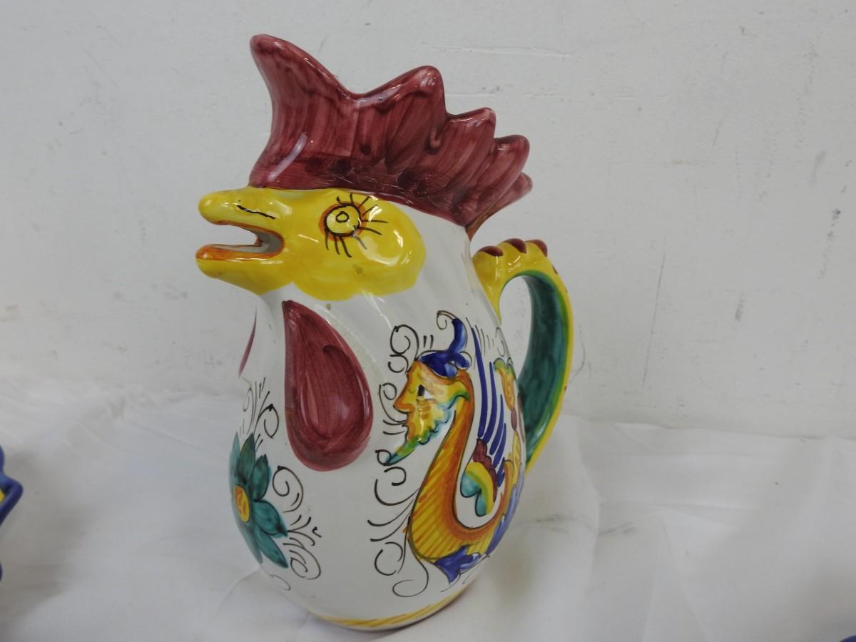 Chicken Glassware Set: Salt and Pepper shakers. and pitcher, plates