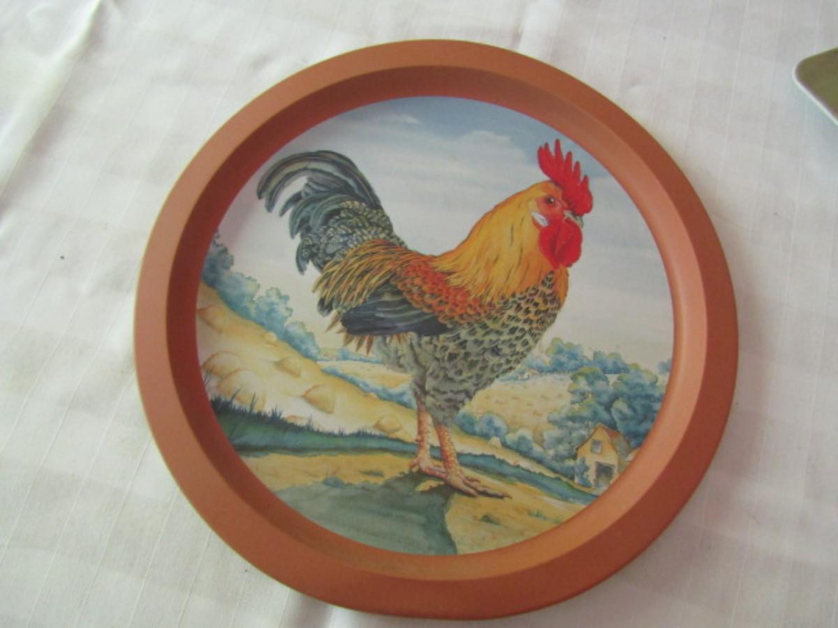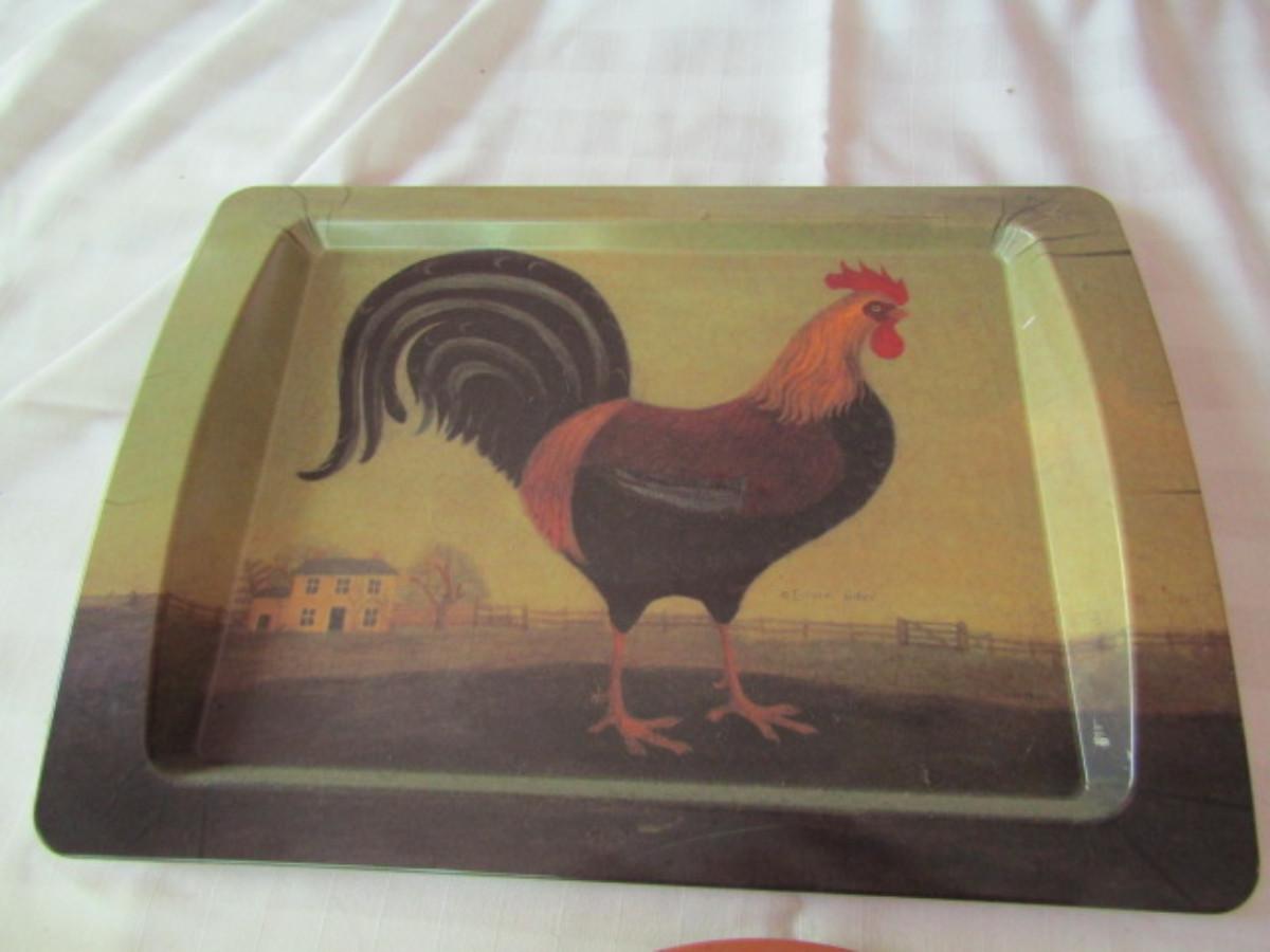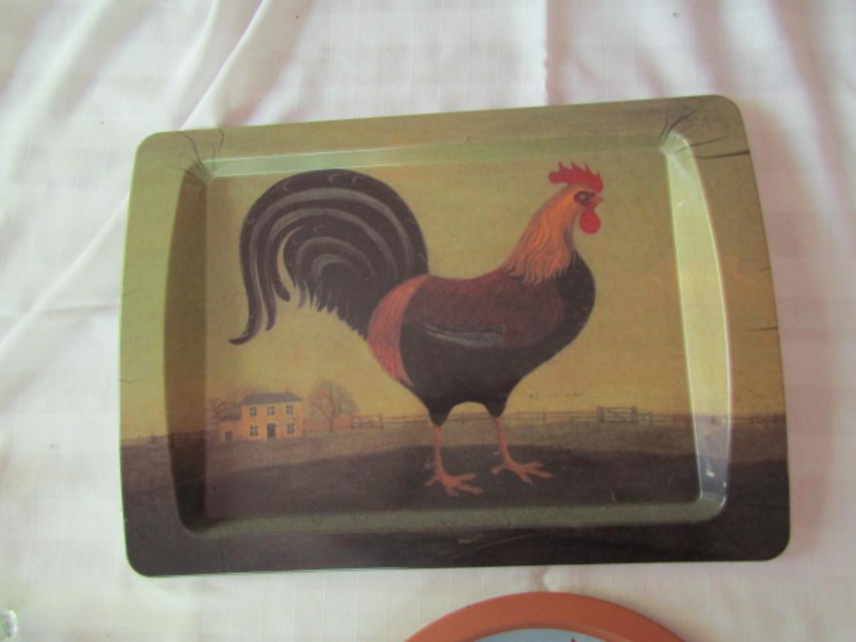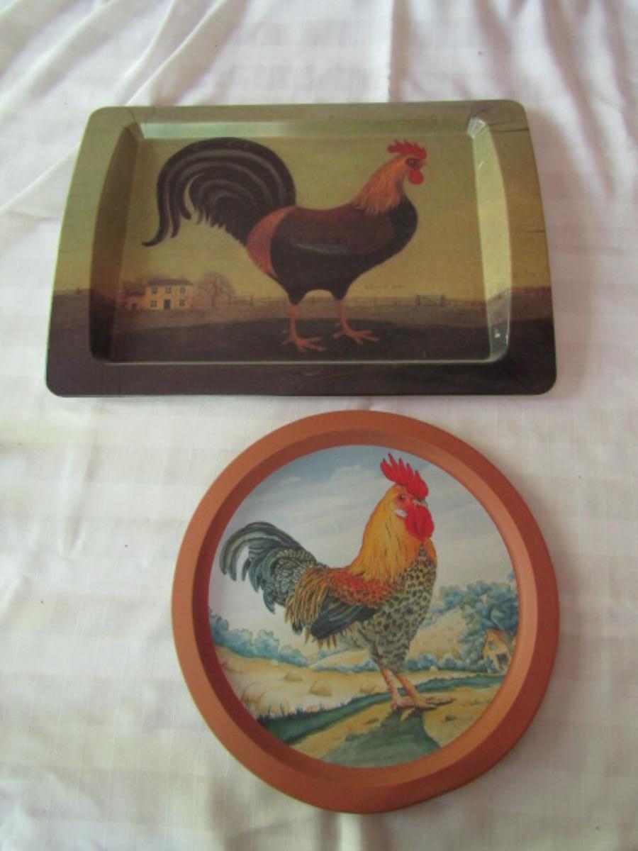 Chicken Theme Serving Trays. Large one is melamine and is made by Pimpernel.