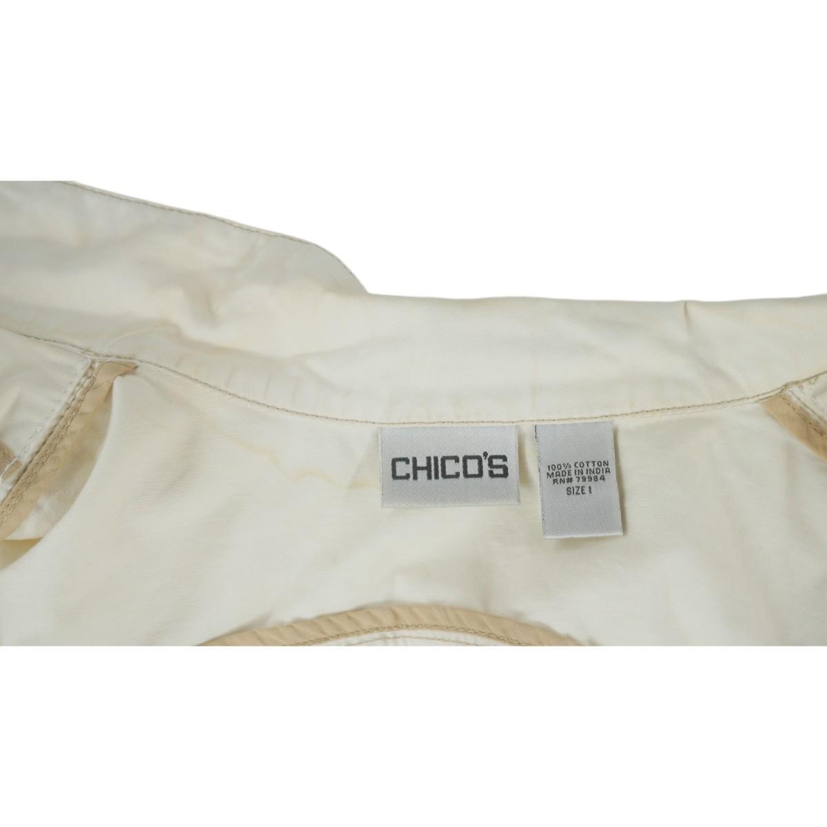 Chico's size coat in size 1, comparable to women's size M 8/10. Multiple stains, see photos.