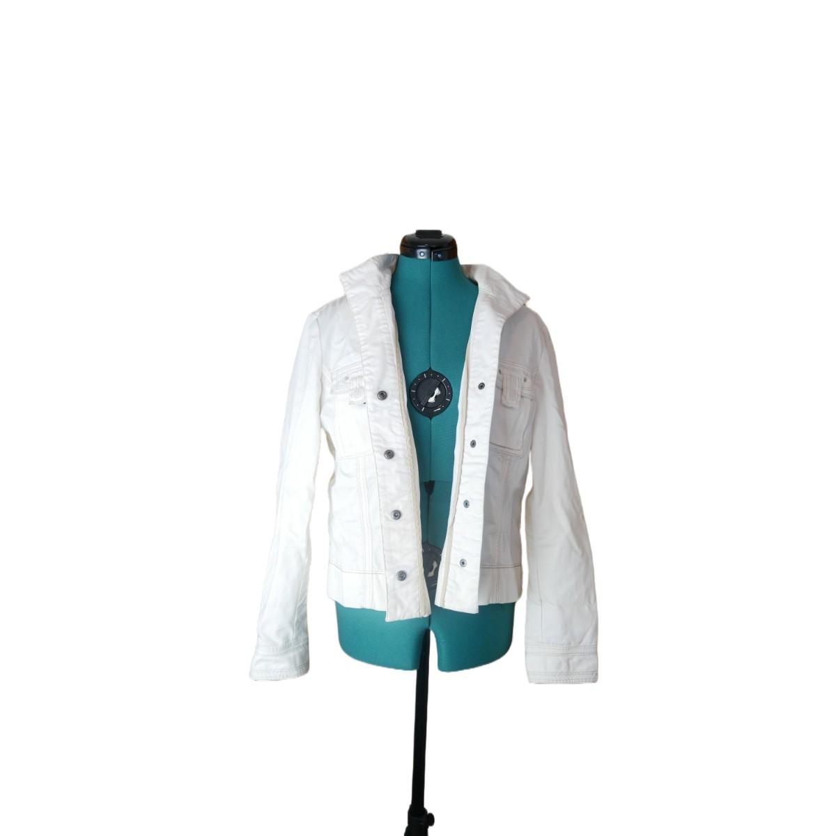 Chico's size coat in size 1, comparable to women's size M 8/10. Multiple stains, see photos.