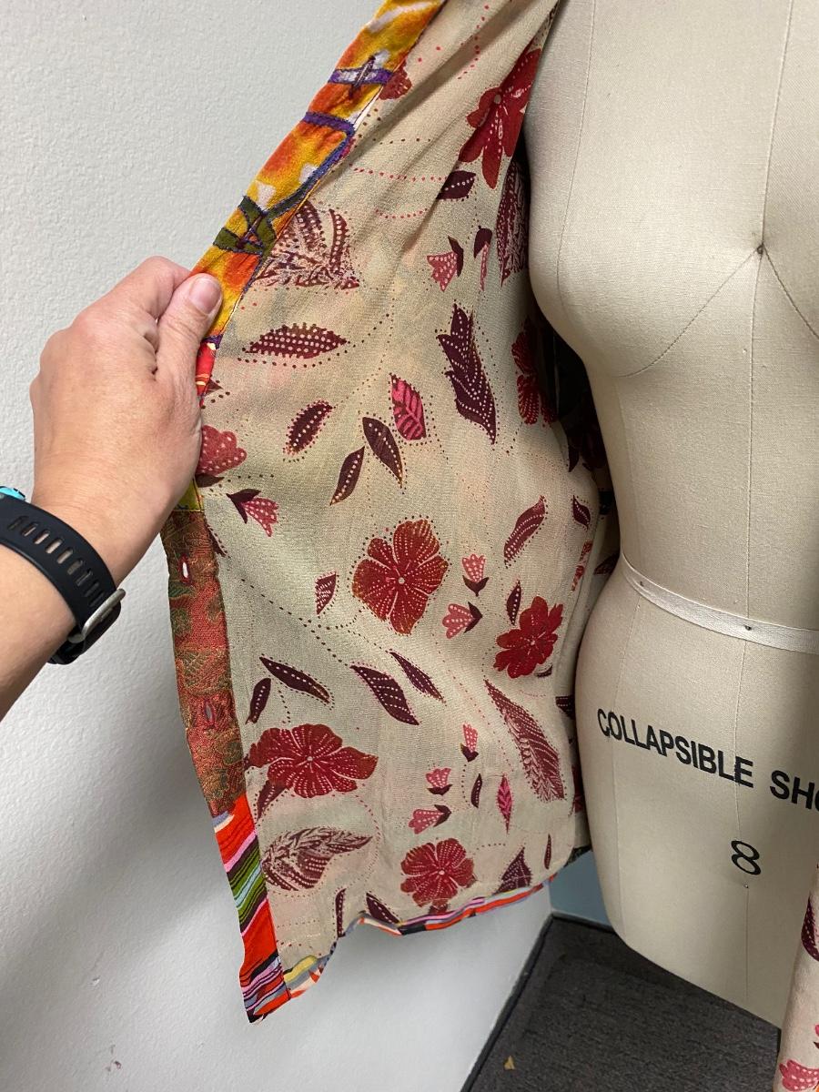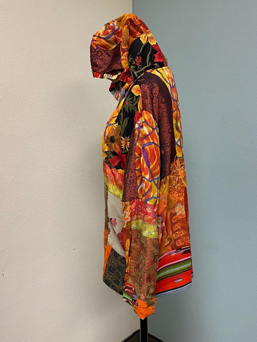 Chico's Design Size 3 Patchwork Style Hooded Button Front Lightweight Coat Blouse