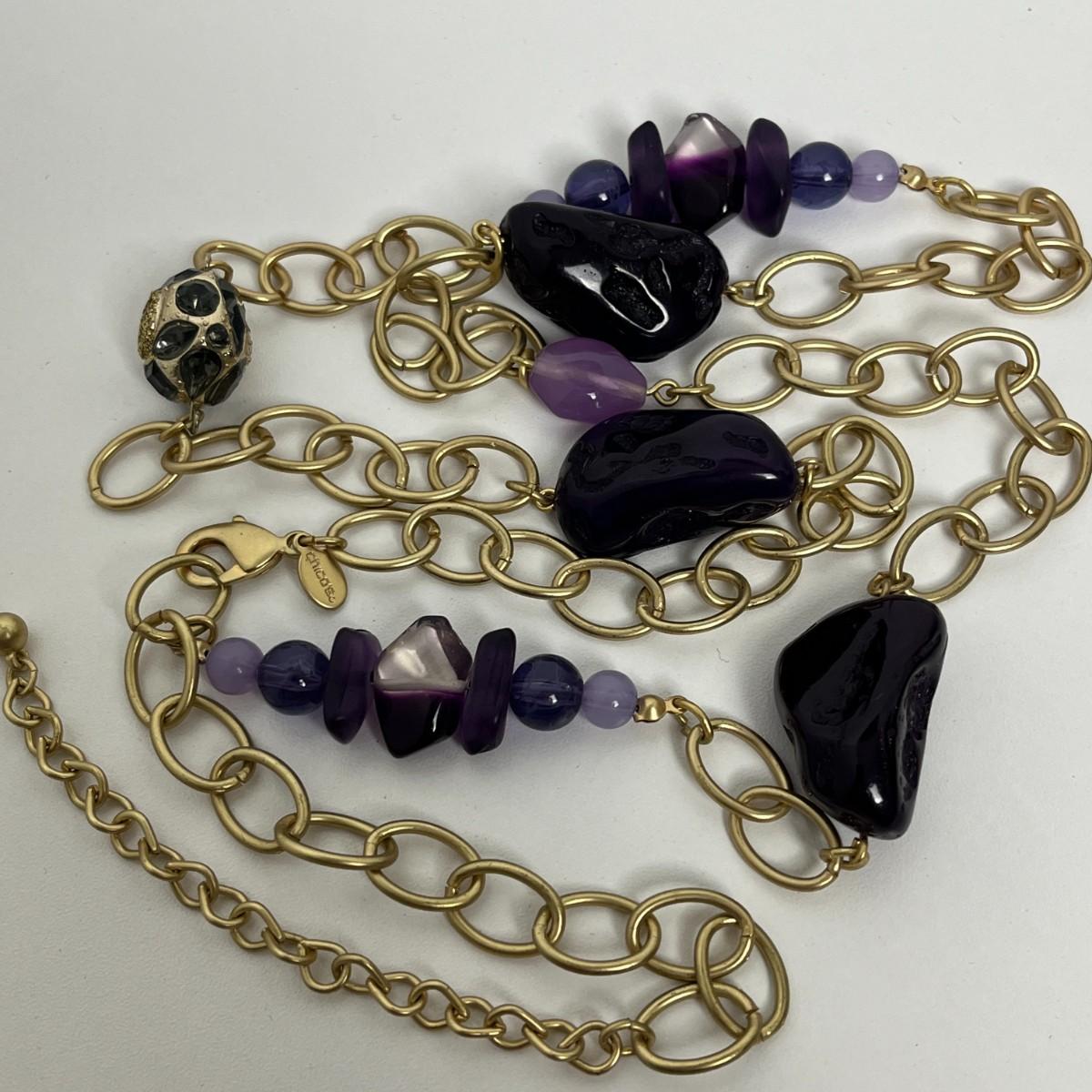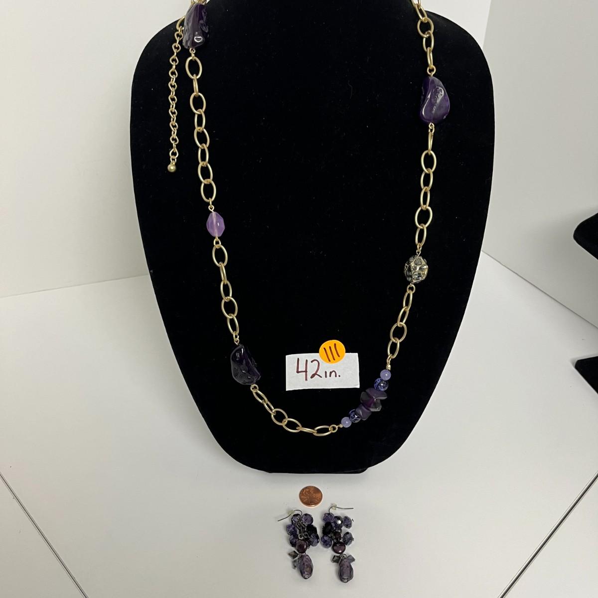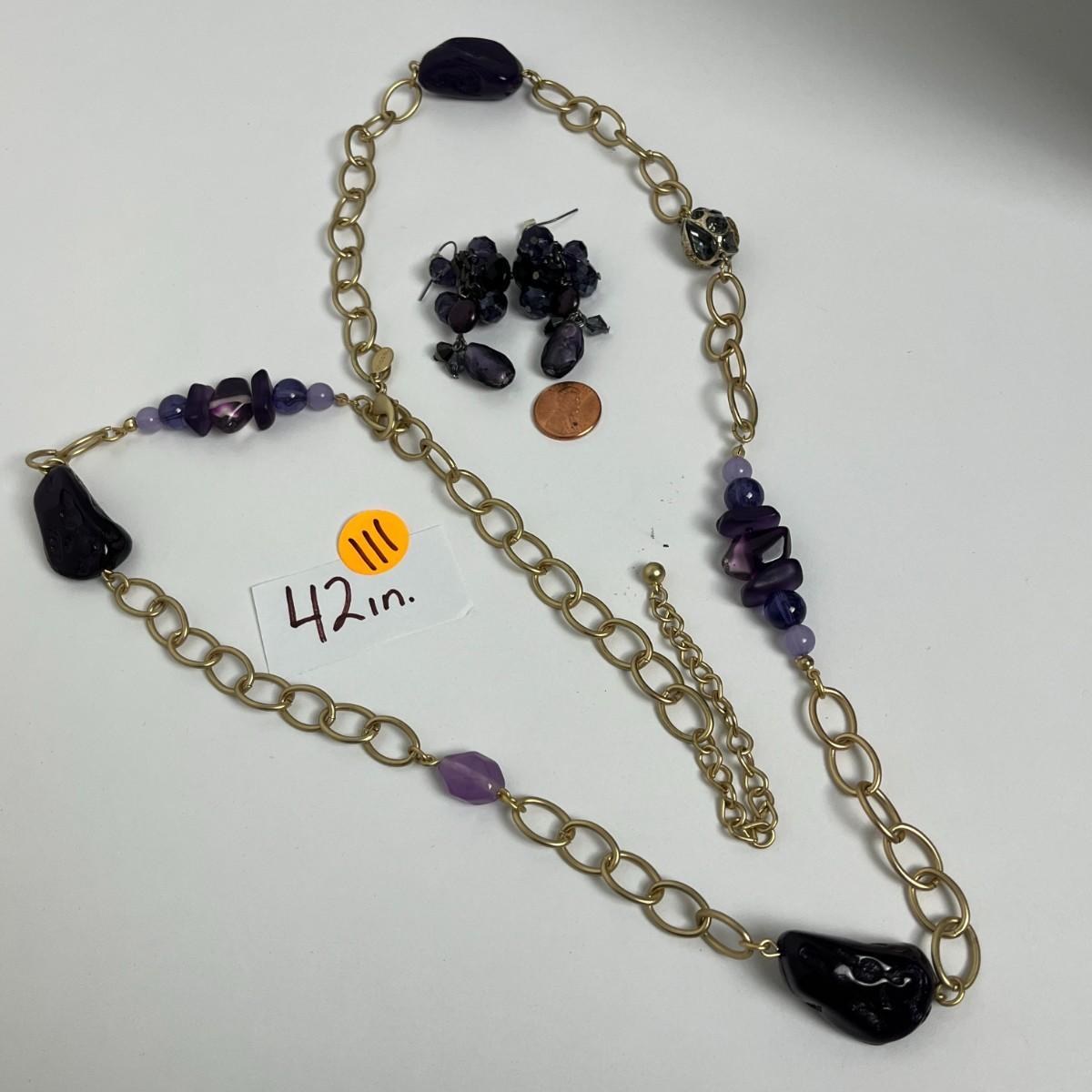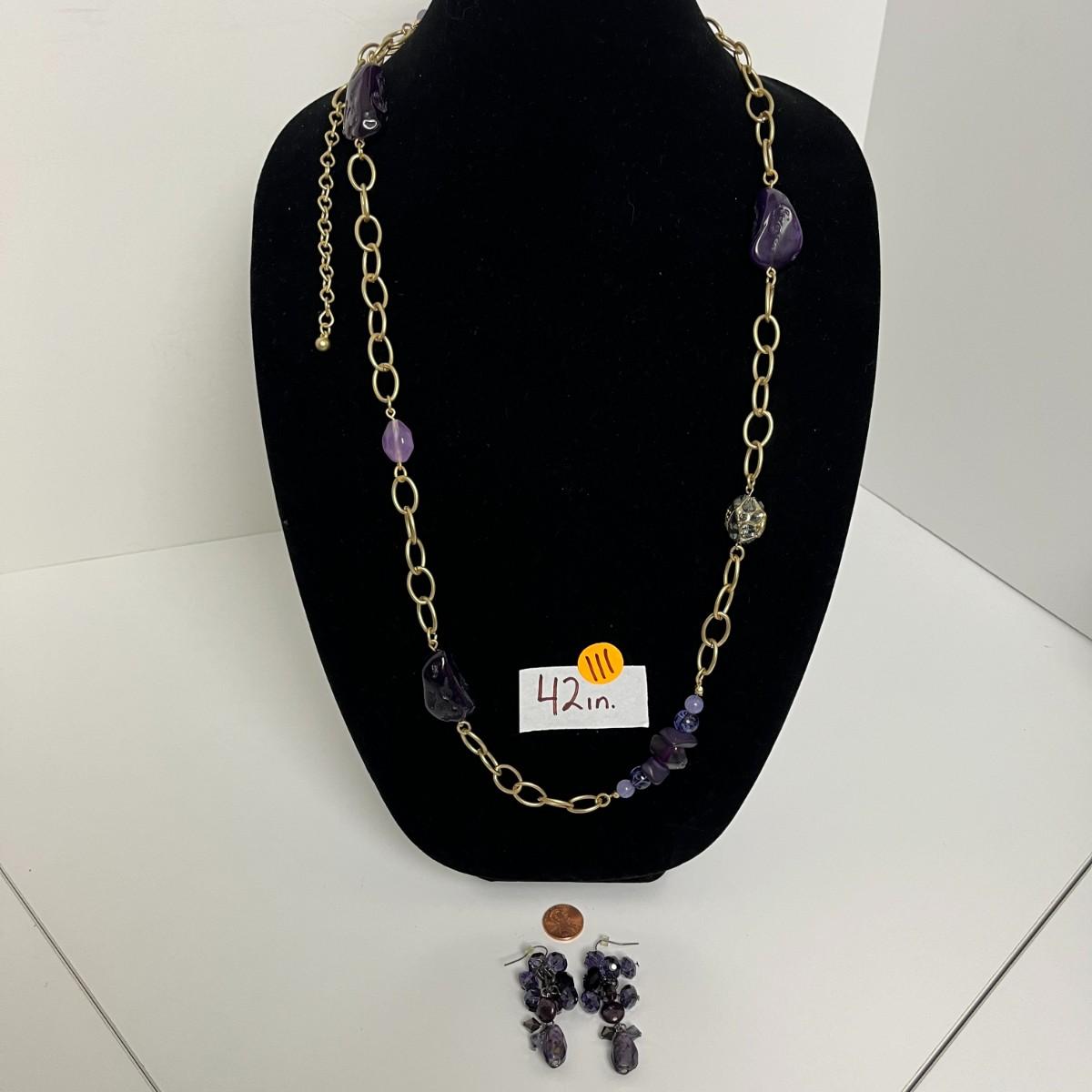 Chico's Gold and Purple Statement Necklace & Earrings (111)