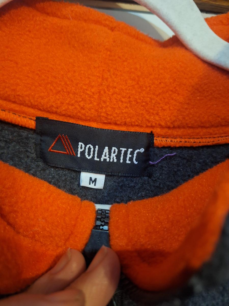 The long sleeve fleece by Polartec is size M, the t shirt is size L