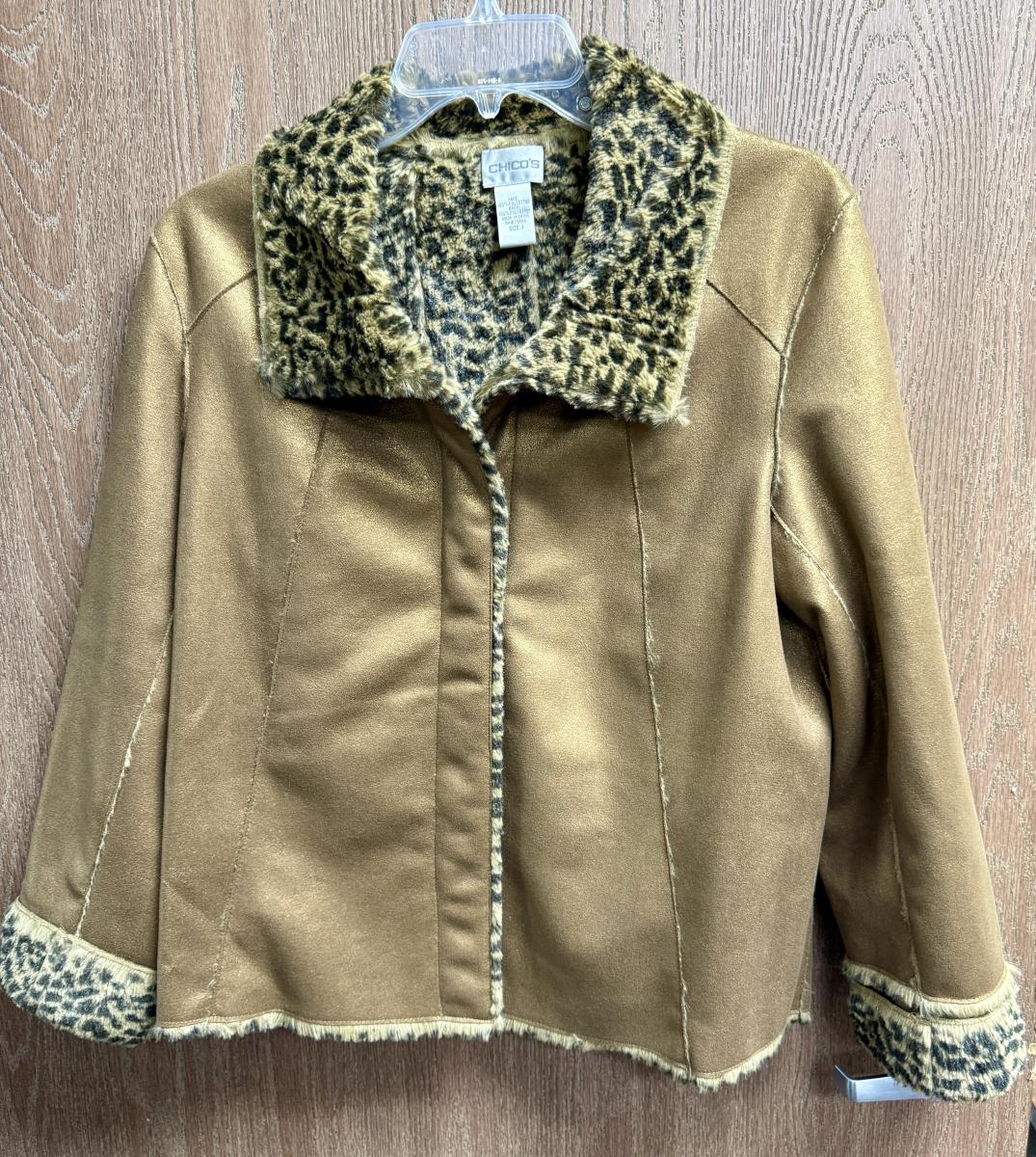 Chico’s Leopard Animal Faux Suede Jacket size 1