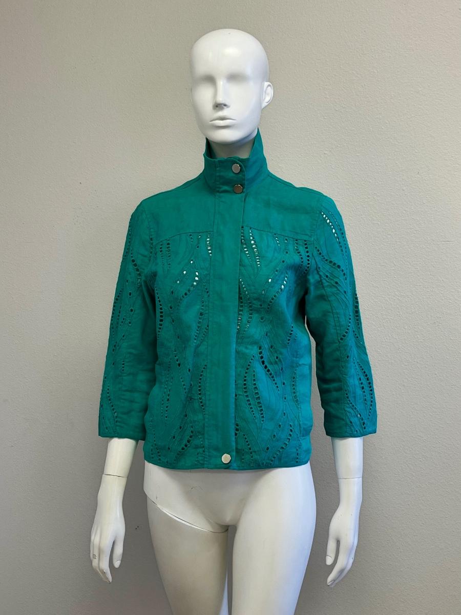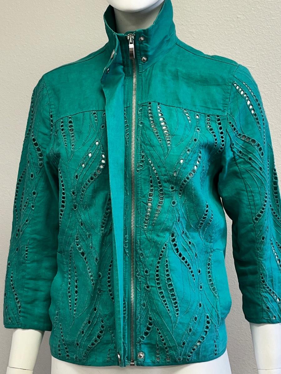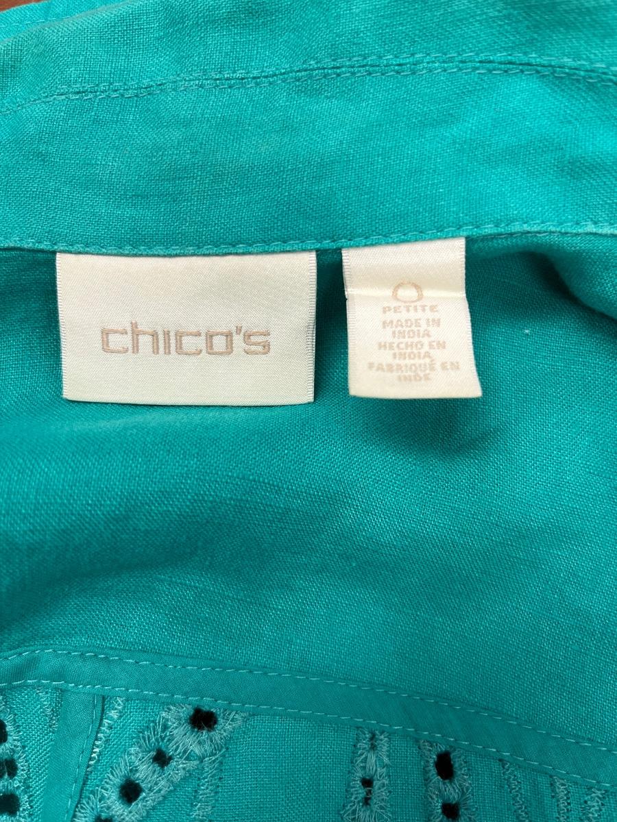 CHICOS ~ Size 0 Petite~ Greenish Blue Ladies Zipper Jacket ~ EUC