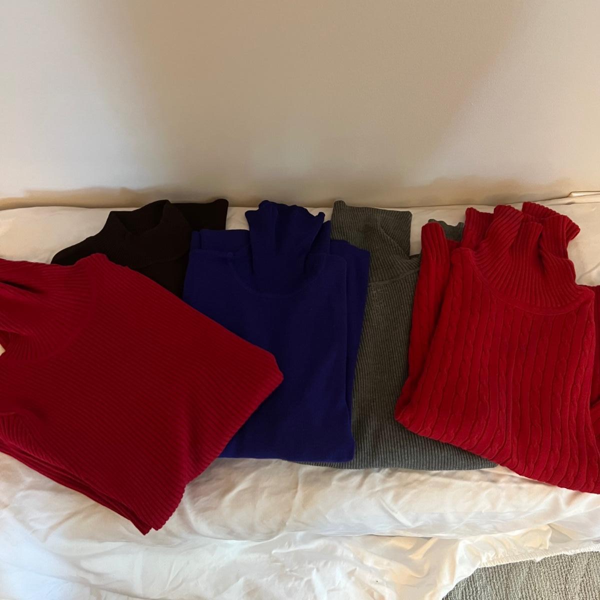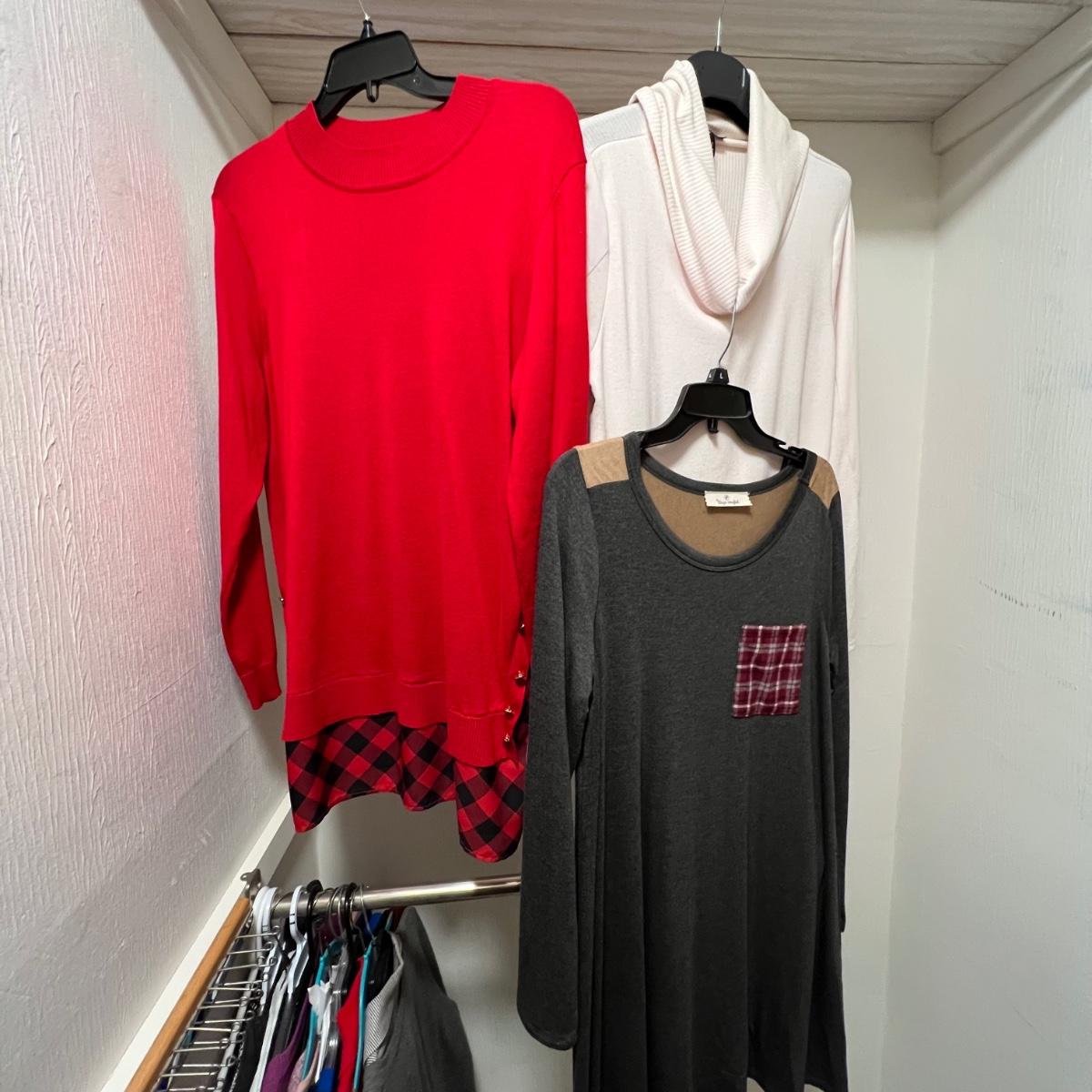Twenty five plus sweaters and cardigans in this large lot. Great brand names includes Chico’s, Tribal, and more. Sizes are a mix of medium and large. Note the white Tribal sweater has a small stain.
