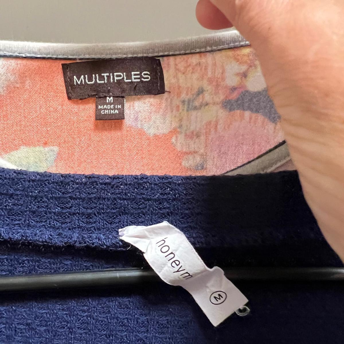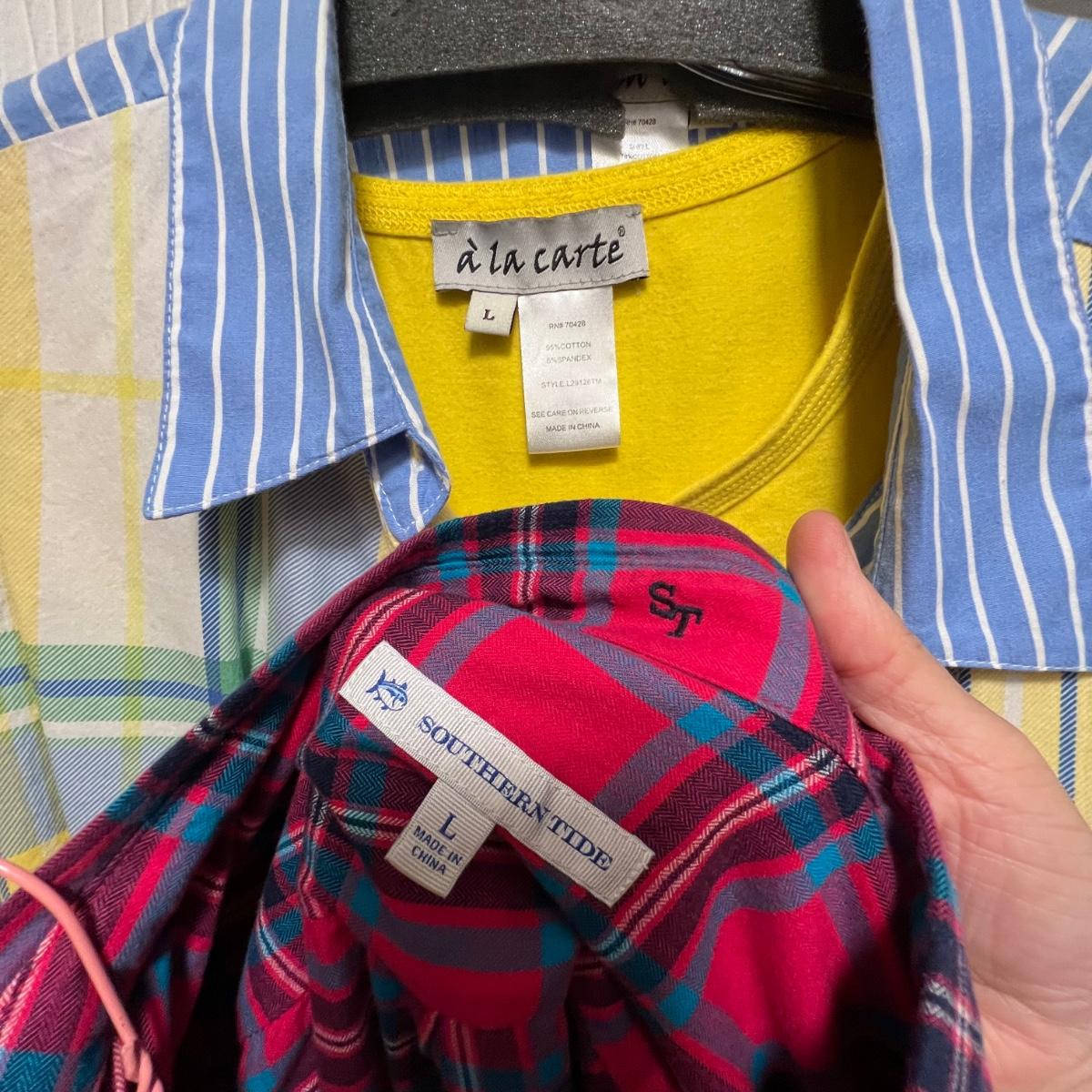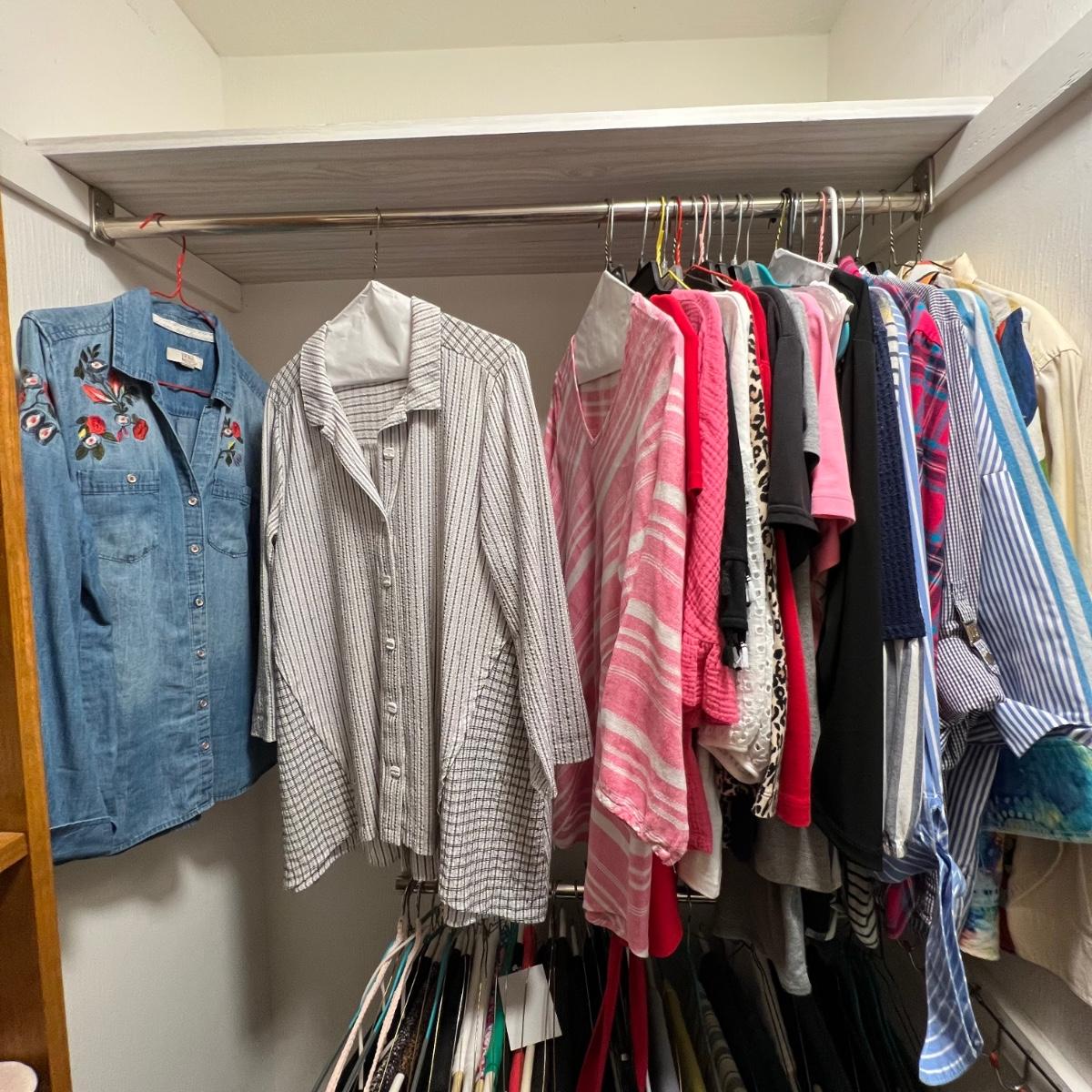 Twenty five women’s tops that are mostly long sleeved with a few tees and camisoles included. Sizes are a mix of medium and large with the odd size small that appear to be on the larger size of small. See images for brands and sizes.