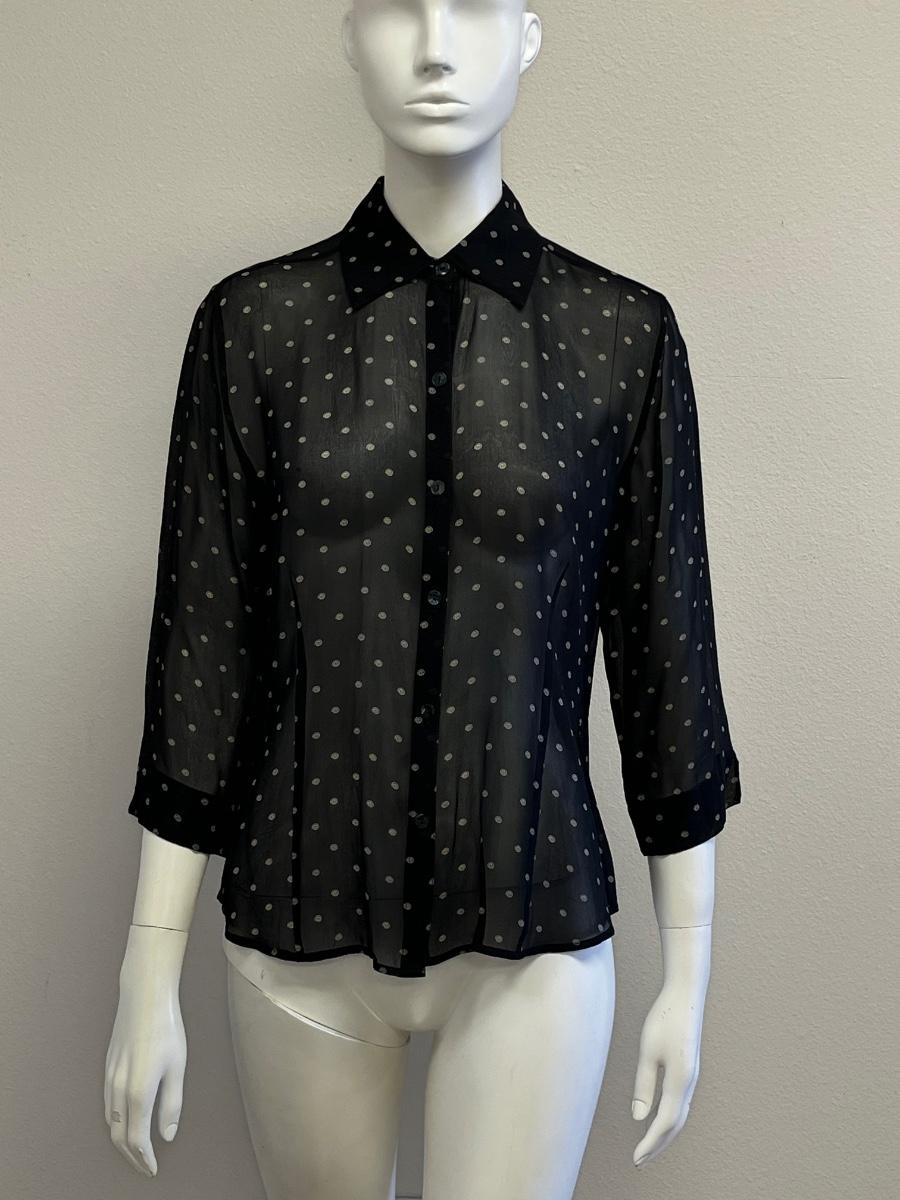 CHICOS ~ Women’s Black & White Sheer Blouse ~ EUC